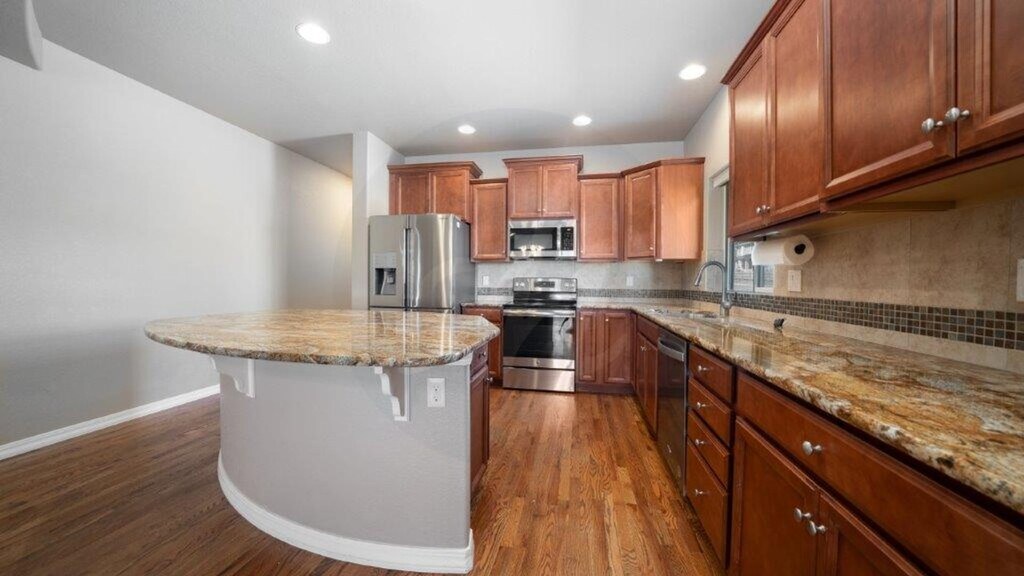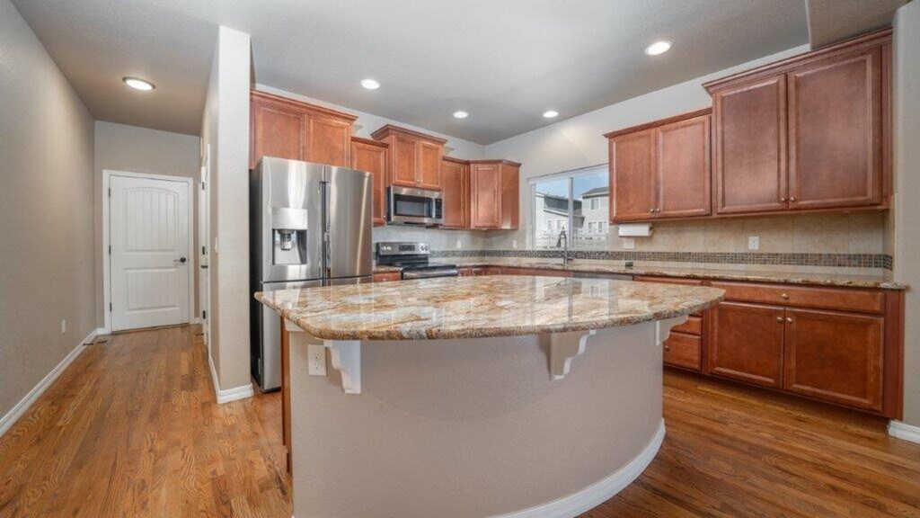 ALL PROSPECTIVE TENANTS HAVIE THE RIGHT TO PROVIDE TO US A PORTABLE TENANT SCREENING REPORT, AS DEFINED IN SECTION 38-12-902(2.5), COLORADO REVISED STATUTES; AND IF THE PROSPECTIVE TENANT PROVIDES US WITH A PORTABLE TENANT SCREENING REPORT, WE ARE PROHIBITED FROM: CHARGING THE PROSPECTIVE TENANT A RENTAL APPLICATION FEE; OR CHARGING THE PROSPECTIVE TENANT A FEE FOR US TO ACCESS OR USE THE PORTABLE TENANT SCREENING REPORT. Don't miss out on this fantastic property that includes landscaping and snow removal in the popular D20 neighborhood of Wolf Ranch. Plenty of outdoor enjoyment come with this property as it has a fantastic front porch and fully fenced side yard. With 4 bedrooms, there's space for all. Enjoy main level living with vaulted ceilings hardwood flooring, a cozy gas fireplace in the living room, and a gourmet kitchen with granite counters, a large pantry, and stainless steel appliances. The spacious primary bedroom with attached bathroom, the laundry room, access to the 3 car garage, and the office round out the main level. Entertain in the basement rec room boasting a wet bar. Two additional bedrooms separated by a jack and jill bathroom complete the basement.