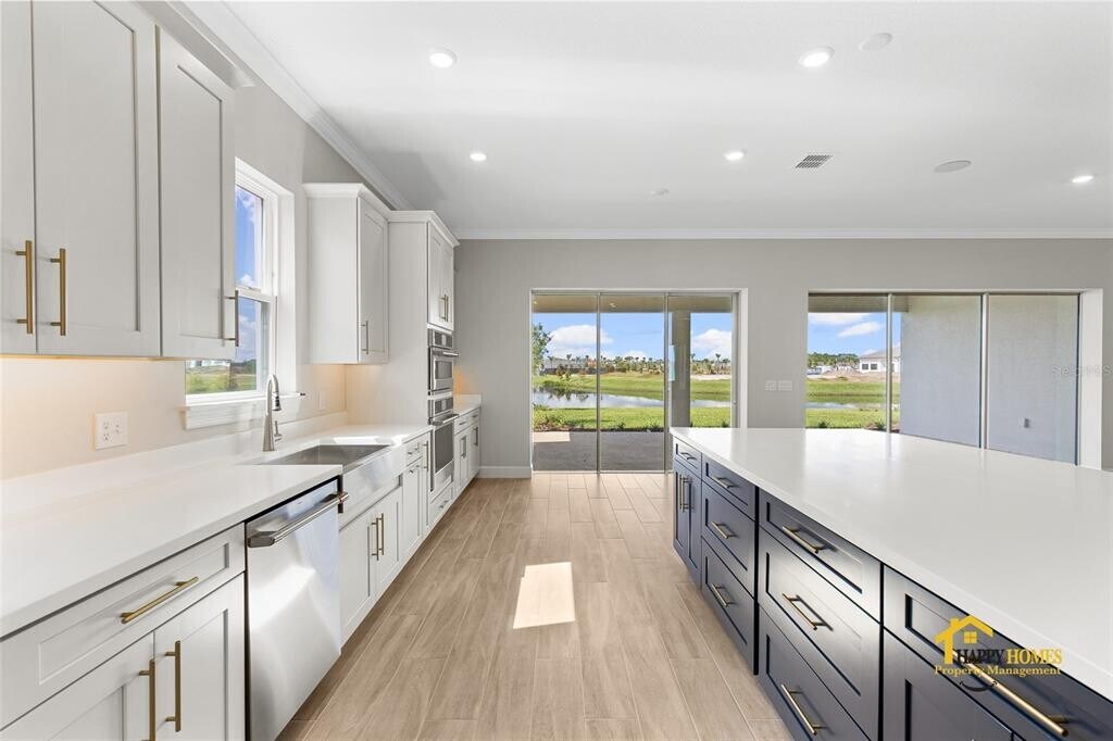 Discover luxurious living in the brand-new Esplanade at Center Lake Ranch. This stunning 3,115-square-foot home offers an impressive blend of style,space,and comfort. Featuring three spacious bedrooms and three beautifully appointed bathrooms,the layout showcases a massive open living area that’s perfect for entertaining or relaxing. At the heart of the home is a show-stopping chef’s kitchen with premium finishes,abundant cabinetry,and an oversized island ideal for cooking,dining,and gathering. The primary suite feels like a private retreat,complete with a spa-inspired bathroom featuring dual vanities,a large walk-in shower,and an expansive closet. Sliding glass doors open to a covered patio with tranquil water views,bringing the outdoors in. Enjoy maintenance-free living with lawn care included by the community. The gated community of Esplanade at Center Lake Ranch offers a resort-style lifestyle with luxurious amenities coming soon,including a clubhouse,pool,fitness center,pickleball courts,and walking trails. Conveniently located near Lake Nona,major highways,shopping,and dining,this elegant new construction home combines sophistication and comfort in one of St. Cloud’s most desirable new communities. MLS# TB8441223