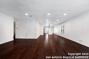 ***MOVE-IN SPECIAL: ONE WEEK FREE***Step into this recently refreshed one-story residence, thoughtfully updated for style and comfort. The home features rich wood flooring throughout and tile in the bathrooms-no carpet anywhere. Each bedroom comes equipped with its own ceiling fan, while recessed lighting adds a warm, modern touch to the living spaces. The kitchen is a true highlight, showcasing a spacious island with a sleek vent hood, updated backsplash, and contemporary countertops. A refrigerator, washer, and dryer are all included for added convenience. The primary suite offers a generous retreat with an en suite bathroom featuring newly updated shower tile. Outside, enjoy the meticulously landscaped grounds and an expansive covered patio, perfect for relaxing or entertaining. With quick access to major highways, the 151 Business Corridor, and a variety of shopping and dining, this home offers a lifestyle of ease and accessibility.