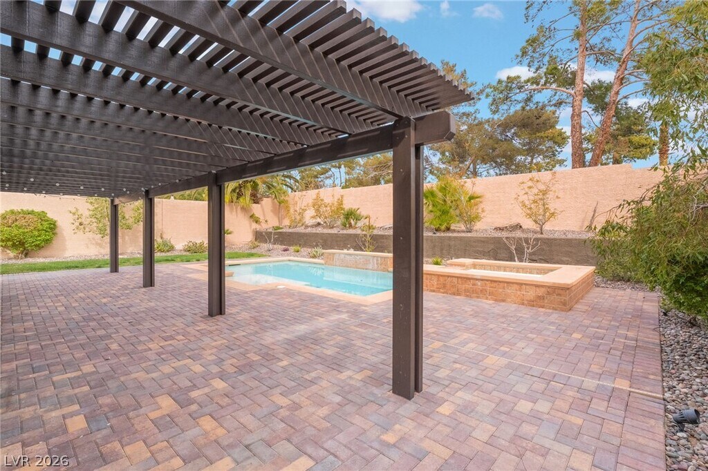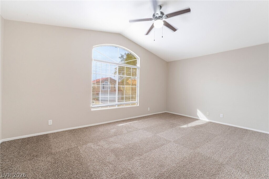 The spacious kitchen is well-appointed with generous counter space, a large pantry, stainless steel appliances, double ovens, recessed lighting, and ample cabinetry, making it ideal for everyday living and entertaining. Vaulted ceilings enhance the bright and open living room, while the family room offers a warm gathering space centered around a stone fireplace. Upstairs, the primary bedroom provides a relaxing retreat with a private ensuite featuring double sinks, a soaking tub, and a separate walk-in shower. Outside, the finished backyard showcases low-maintenance desert landscaping, pavers, and a beautiful pool with spa, creating an inviting setting for outdoor enjoyment. Ideally situated near Downtown Summerlin, parks, shopping, dining, and local conveniences, this home delivers a well-balanced lifestyle in a sought-after location. - Tenant is responsible for additional pool and landscaping services* Landscaping $150/month (bi-weekly service) Pool Service $175/month