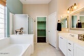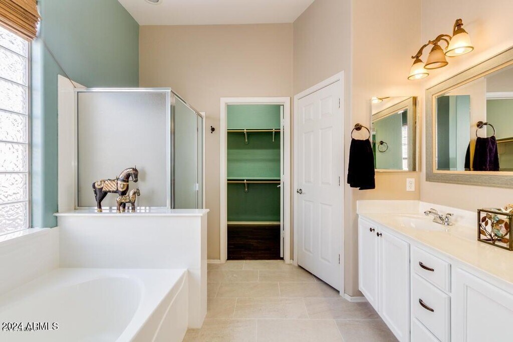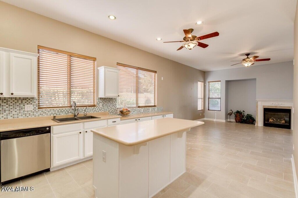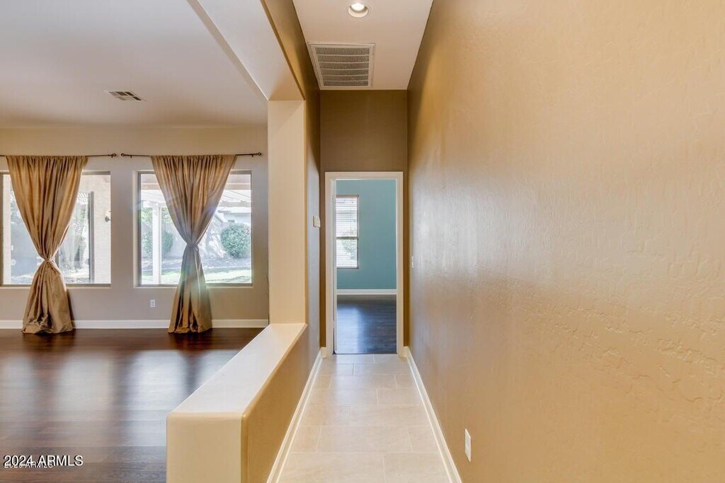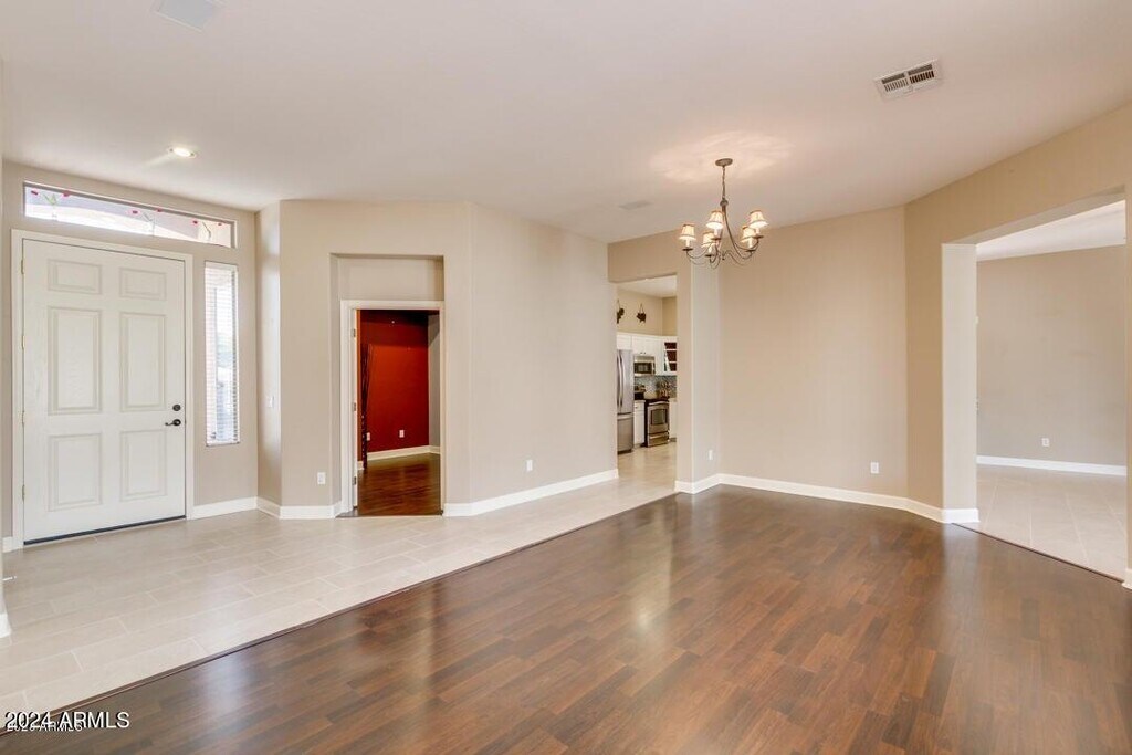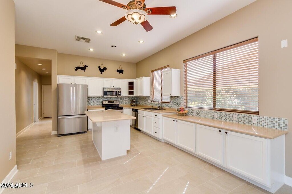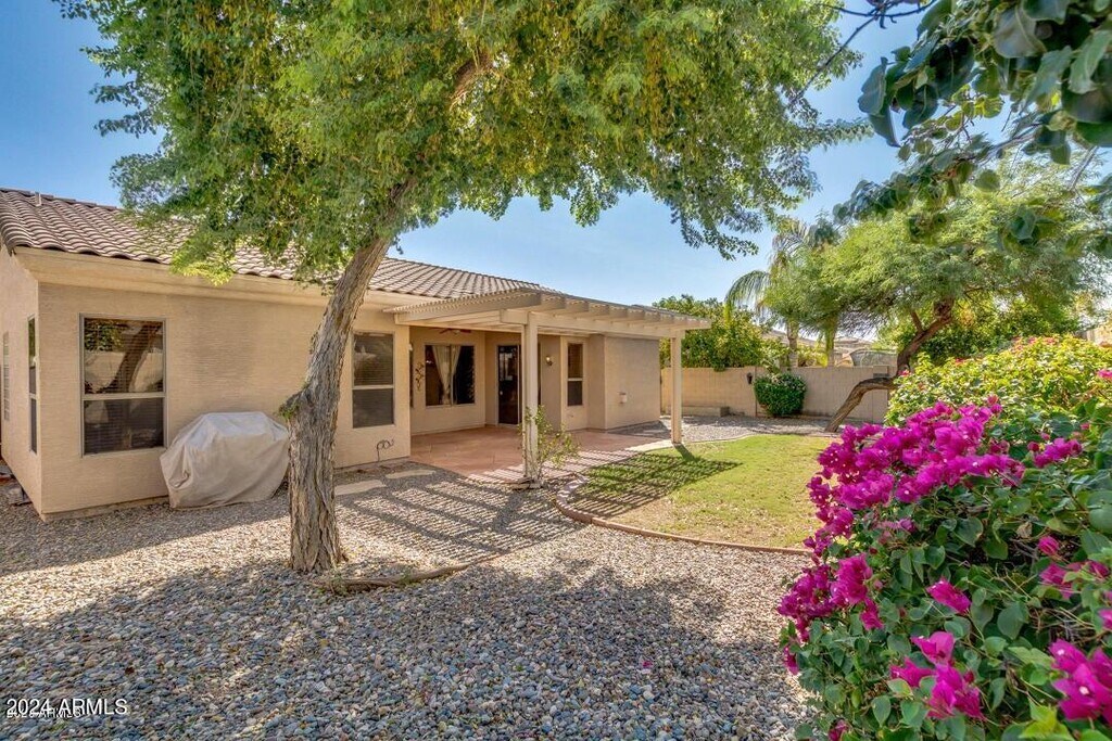 Welcome to this beautifully maintained home with stunning curb appeal,nestled in the highly desirable Augusta Ranch Golf Community. This spacious residence features 3 bedrooms,a versatile den,and a 3-car garageperfect for extra storage or hobby space. The popular split floor plan offers both privacy and functionality. Step inside to all-new tile and luxury laminate flooring throughoutno carpet anywhere! The updated kitchen is a chef's dream,boasting stainless steel appliances,a center island,sleek white cabinetry,a stylish mosaic tile backsplash,and a pantry for added storage. Recent major upgrades include a NEWER HVAC system (2022),NEWER exterior paint,and a NEWER roof (2024). Garages outfitted with insulated doors and wall-mounted A/C unitsperfect for projects. Must see!