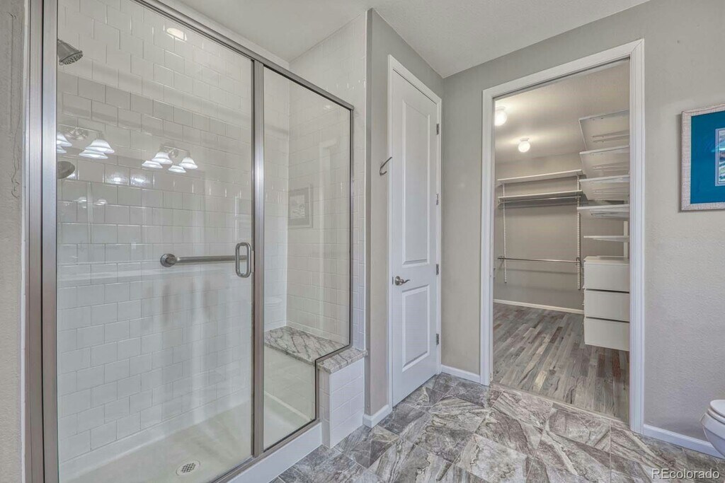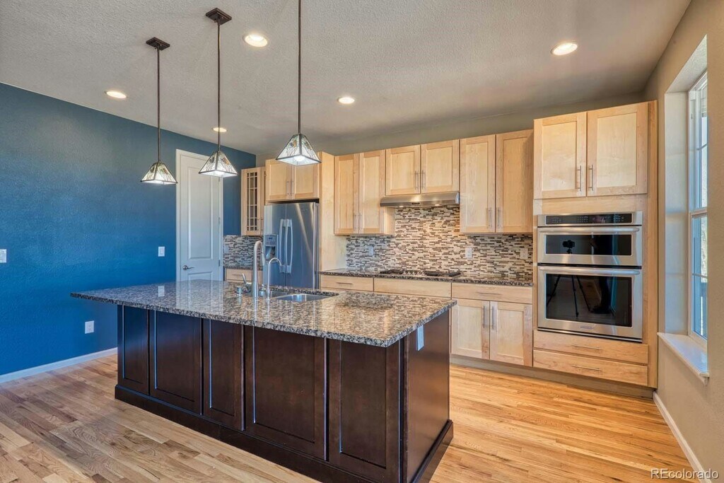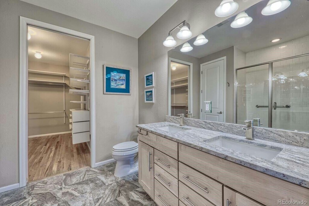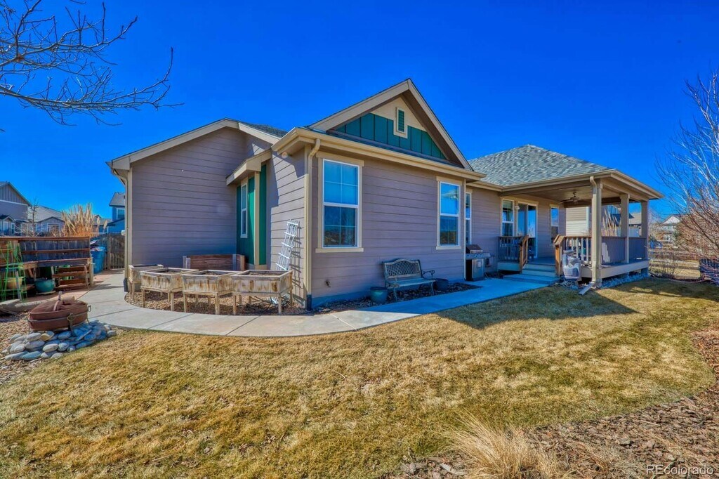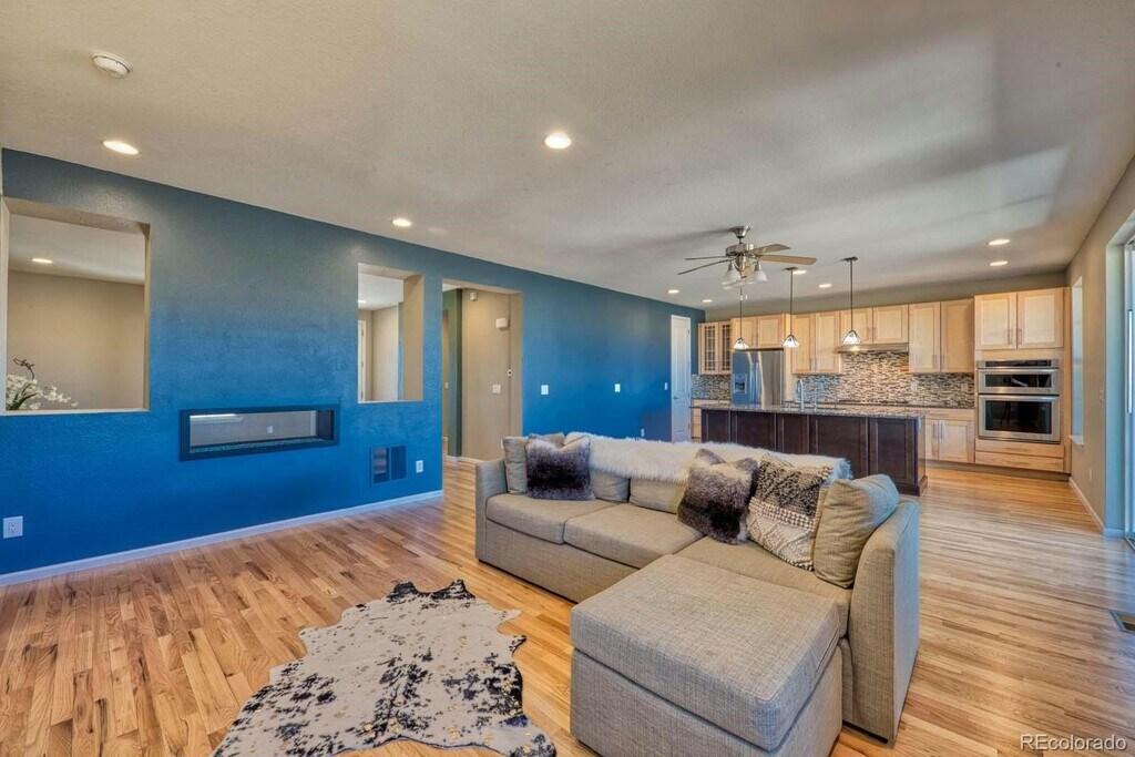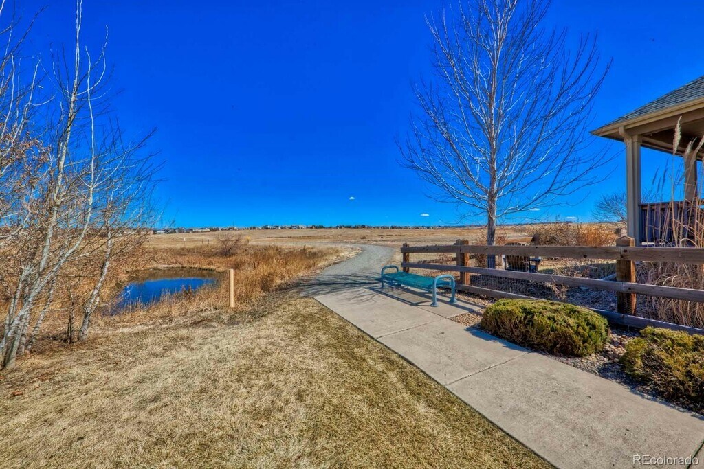 Rare ranch-style home with a 3-car garage backing to open space in a highly desirable location. This ADA compliant property features wide doorways, grab bars, and an electric wheelchair lift built directly into the garage for added accessibility and convenience. Thoughtfully designed and loaded with high-end finishes, this home offers comfort, function, and style throughout. Full unfinished basement. Hardwood floors span the entire main level, creating a warm and inviting atmosphere. The gourmet kitchen is a standout with granite countertops, stainless steel appliances, beautiful 42-inch cabinetry, and a large center island perfect for entertaining. The spacious dining area flows seamlessly into the family room, which shares a two-sided fireplace with the living room, creating an ideal setting for gatherings or quiet evenings at home. The generous primary suite features a well-appointed five-piece bath and a large walk-in closet complete with a built-in organization system and dedicated jewelry drawers. Two secondary bedrooms were combined by the original builder to create a spacious second primary-style suite, offering flexibility for multigenerational living or guests. A convenient main floor study with French doors provides a perfect work-from-home space. The oversized mudroom includes built-in cabinetry, a laundry chute from the primary bedroom, utility sink, and washer and dryer. The unfinished basement includes rough-in plumbing and is ready for your future expansion. The heated three-car garage is wired for a workshop and includes built-in cabinetry. Step outside to enjoy the Enclosed covered deck overlooking open space, providing a peaceful setting to take in nature. The professionally landscaped backyard features a charming patio, beautiful perennials, and raised garden beds. Additional highlights include professionally installed blinds and fabric window coverings, as well as a south-facing driveway for easy snow melt in the winter. Conveniently located just minutes from shopping, C-470, and Denver International Airport, this exceptional home offers accessibility, luxury, and an unbeatable setting.