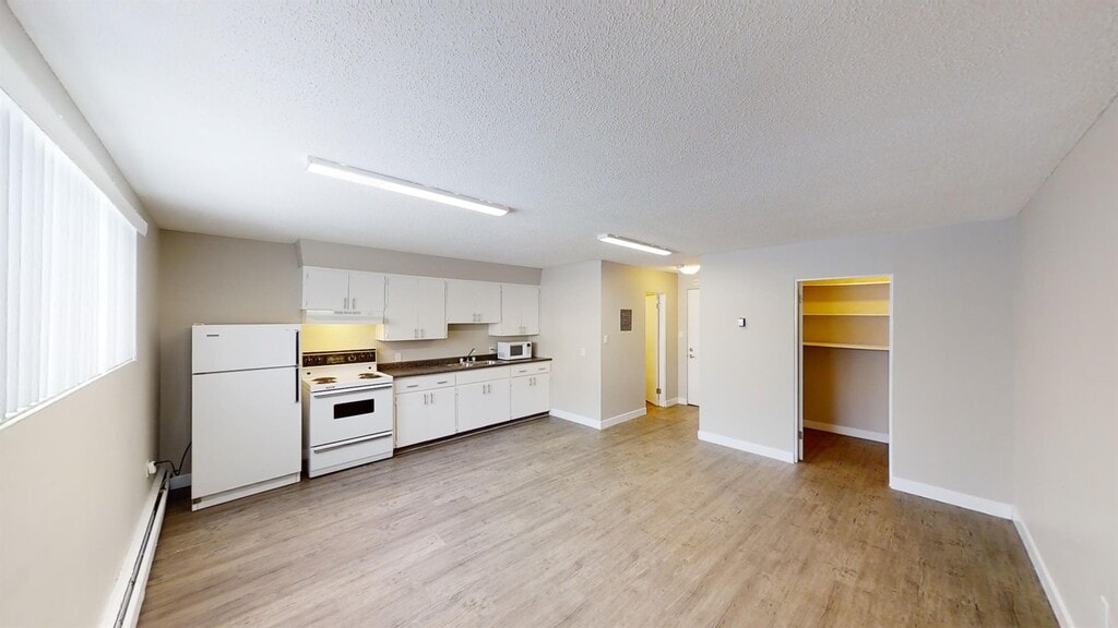Bachelor unit in Montrose Apartments! Conveniently located bachelor 1 bath apartment. Unit features entry closet, storage room/pantry, and newer vinyl plank floors. Good sized living space, storage room and 4 piece bathroom. The building features keyless fob entry, door buzzer, security cameras and security patrols. Onsite coin laundry. Rent includes water and heat. Above ground parking available for $10/mo. Cat friendly with $50/mo pet fee. See it in 3D! Enjoy the perks of living in this central location. Close to Muskoseepi Park and walking distance to the public library. Close to four schools and public transportation. Renter will enjoy the convenience of a central location with restaurants and local shopping close by. Powered above ground parking stall available for $10/mo.