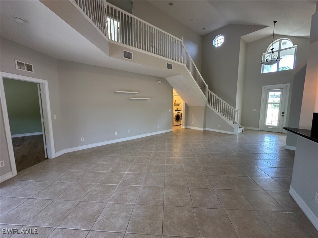 This beautiful 3 bed / 2.5 bathroom home is designed for the ultimate Florida lifestyle. The open and bright floor plan features high ceilings that create an expansive,airy feel throughout the main living areas. Outside you will find a private backyard oasis with a brand-new pool. It includes a special sun shelf,perfect for lounging and soaking up the sun. The kitchen features stainless steel appliances and granite countertops. The main level boasts a large,private master bedroom with an en-suite master bathroom and a spacious walk-in closet. Upstairs,you'll find two additional bedrooms and a versatile loft space,ready to be transformed into anything you desire a home office,a media room,or a play area. Best of all,this home is pet-friendly,so your furry companions are welcome to enjoy this beautiful space with you. The home is situated near downtown Bonita,restaurants,shopping and pickle ball courts. Other features include washer / dryer inside the home and a 2 car garage with electric vehicle charger. Note: Move in early at no additional charge. September rent is free once lease is signed and all deposits paid.