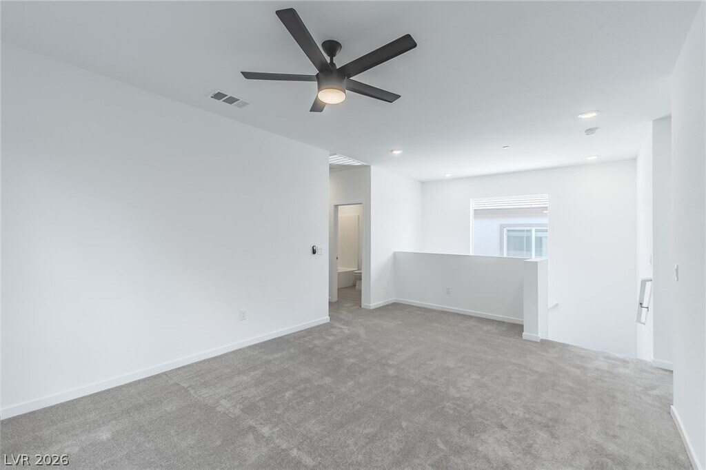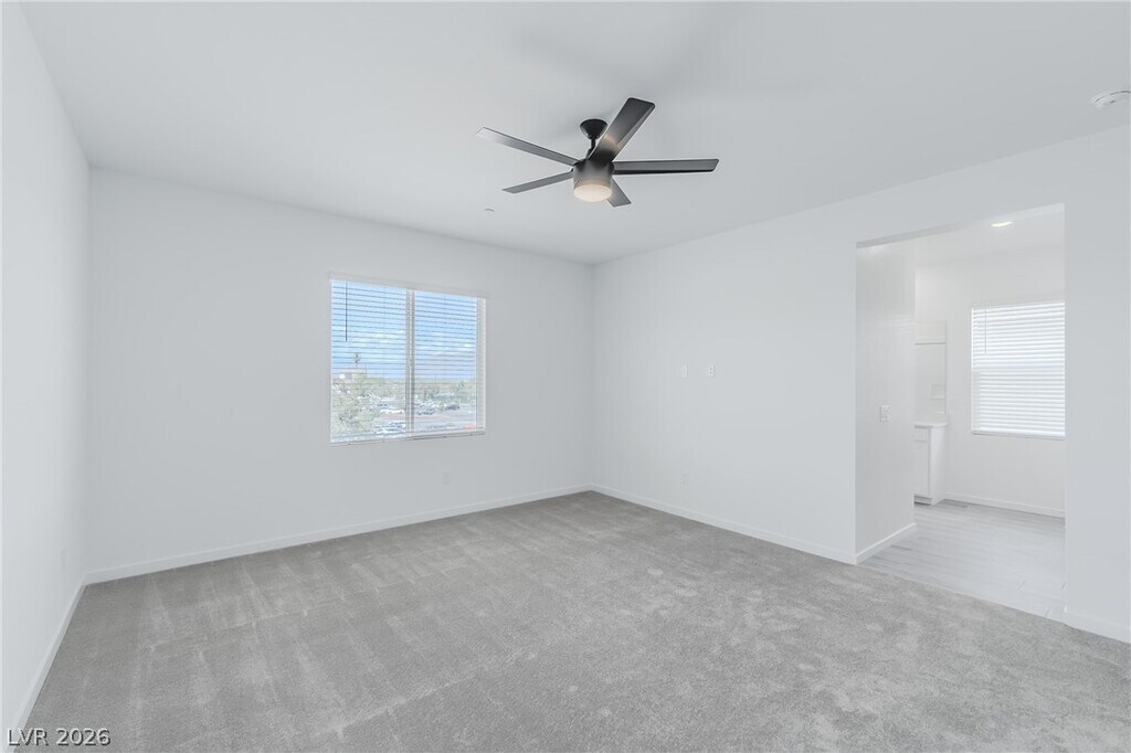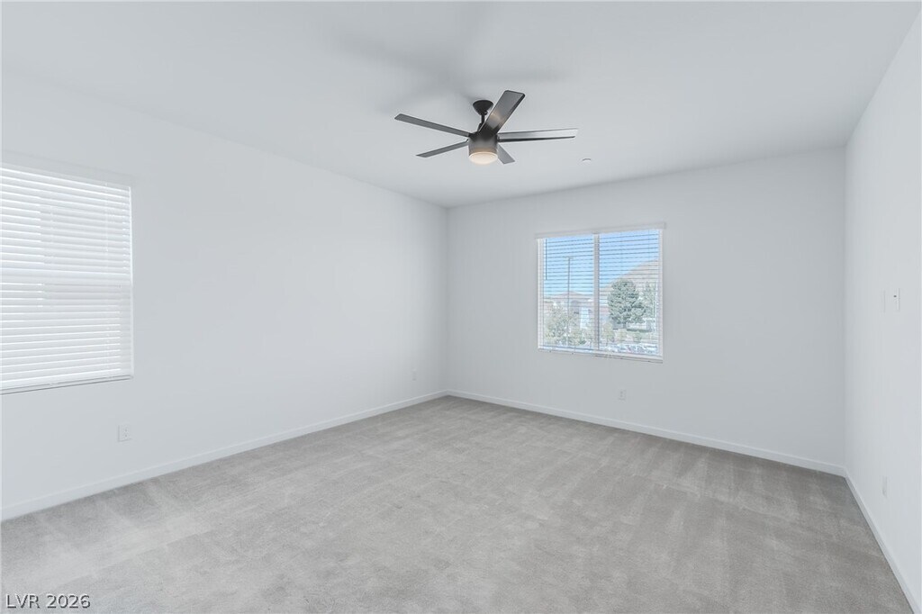 This brand-new, two-story home features 4 bedrooms, 4 bathrooms, and a two-car garage. The main floor has easy-to-clean tile, one bedroom, and one full bathroom, while the upstairs is cozy with carpet and includes a master suite plus another bedroom with its own private bath. You will love the cozy backyard and the kitchen's new stainless steel appliances, with a washer and dryer also included. High-speed Fision Fiber internet is a mandatory amenity bundle! Located just minutes drive from the 215 and Cheyenne, Walking distance to Challenger Schools, Police Memorial Parks. This home is a must-see!