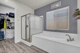 This Gorgeous single story, 3 Bedroom, 3 bathroom home is located in the beautiful and highly desired Skye Canyon community! New luxury vinyl plank flooring throughout, Custom Trim, casings and baseboards. Custom Paint and stacking slider doors to the backyard. This Home is set up to entertain, open floor plan, large oversized island and stainless steel appliances. courtyard complete with fire pit. Backyard has a custom pool & Spa, covered patio with blocking for exterior TV, natural gas fire pit. Rent includes pool & landscaping monthly maintenance fee.