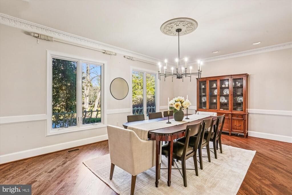 MAGNIFICENT SHOWCASE IN FALCONHURST COMMUNITY! Sited on a 2.3 acre lot, this one of a kind Falconhurst estate features 7 Bedrooms, 6 baths, 2 half baths, and an enchanting fully landscaped backyard with swimming pool, water fall, and hot tub. This 7,800 square foot home, featuring 4 levels of luxury living and an expansive walk-out basement just minutes away from Potomac Village, Congressional Country Club, and easy access to downtown Bethesda and the Beltway. Framed by a circular driveway, this majestic property is a statement in elegance. As you enter, you are first greeted by a 3 level soaring entryway with circular staircase and light-filled open floor plan. On the right, a formal living room with hardwood floors, fireplace with wooden mantle and marble hearth, and a formal dining room with space for all your entertaining dreams on the left. Walk straight through to the stunning sunken family room with built in custom cabinetry, a gas fireplace with stone work, and views of the stunning fully landscaped backyard. The kitchen is a chef’s delight with five-burner gas cooking, quartz countertops and all-white cabinetry, newer stainless steel appliances,and custom backsplash. A conveniently located half bath, laundry and mud room round out this space, with access to the attached three car garage. A spacious sunroom off of the kitchen features three skylights and French doors that lead out onto the deck. Beyond the deck, the backyard is a summertime dream with a custom swimming pool that boasts a hot tub and waterfall for the whole family to enjoy, and year-round greenery. The upper level, you’ll find an owner’s suite replete with a wood-burning fireplace and balcony overlooking the pool. The ensuite bath with marble tile flooring is an owner’s oasis with its step up jetted soaking tub, dressing area flanked by two walk-in closets with built-in organizers, recessed lighting and a bidet. The upstairs features hardwood floors throughout, with four additional bedrooms with ensuite or shared Jack-and-Jill bathrooms. On the third floor, you’ll find two additional bedrooms with a Jack-and-Jill bathroom. Downstairs, you’ll find a craft room with cedar closet, gym with sliding glass doors to the fabulous backyard, huge party space with another full bar and kitchenette, elevated stone fireplace, and a wine room