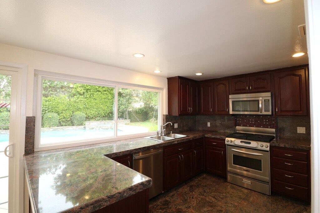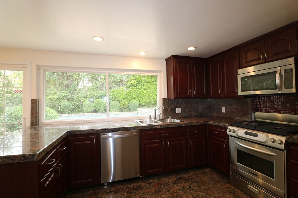 Spacious, 4-bedroom, 3-bath home for lease located in a quiet neighborhood of Chatsworth. The interior was recently painted throughout and is ready for occupancy. This is a two-story residence with 2,700 sq. ft. featuring a nice floor plan with wood floors in the living area and recently installed carpets in the upstairs bedrooms and stairway. Additional features include: - Kitchen with granite counters, stainless steel appliances, and a breakfast room with backyard access. - Spacious family room, formal living room, and dining room with a fireplace. - Dual pane windows, Generous closet space in each bedroom - Primary bedroom with a huge walk-in closet in suite bath with dual sinks, and a large front balcony. - Private backyard with mature trees. a pool, jacuzzi and grassy area. - Spacious 2-car garage with direct access. The property is in a good location West of Topanga Canyon Blvd. with easy access to 118 /405/5 and 14/ Freeways. Lease Price: $4,950.00 (Minimum of one-year lease) For more information visit: Call Listing Agent: DRE # 01709588 LRS Realty and Management Inc. DRE # 01820556 "We are an Equal Housing Provider and follow all Fair Housing Laws"