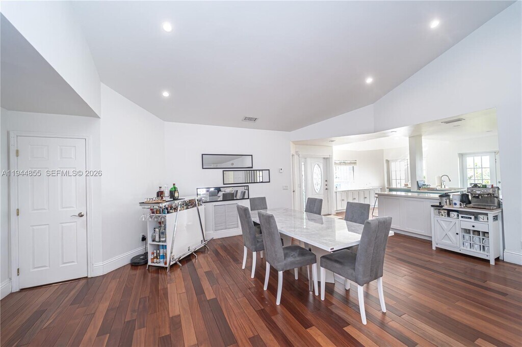 Beautifully remodeled one-story home in the gated community of Doral Woods. This modern and spacious residence features 4 bedrooms, 3 full bathrooms, and a versatile den ideal for an office, playroom, or guest space. The open layout showcases high vaulted ceilings, wood floors, and abundant natural light throughout. The contemporary kitchen offers white cabinetry, quartz countertops, stainless steel appliances, and an oversized island perfect for daily living and entertaining. French doors open to a private patio, enhancing the home’s seamless indoor–outdoor flow. All bathrooms have been tastefully updated, and the property includes impact windows and doors. Doral Woods is a quiet, exclusive community with a private pool, plus HOA access to Doral Country Club amenities such as gym, pool, restaurants, playground, tennis and more. MLS # A11944855