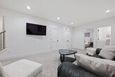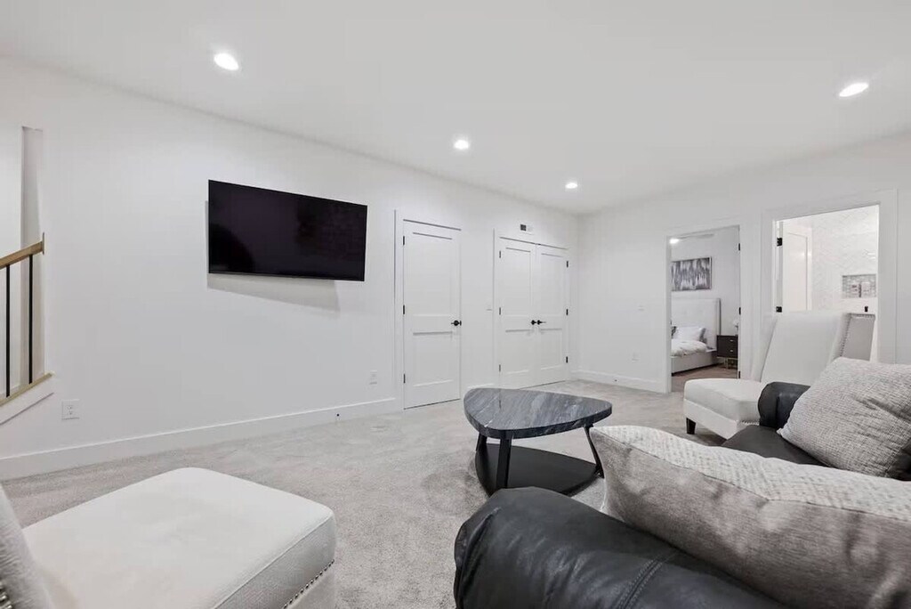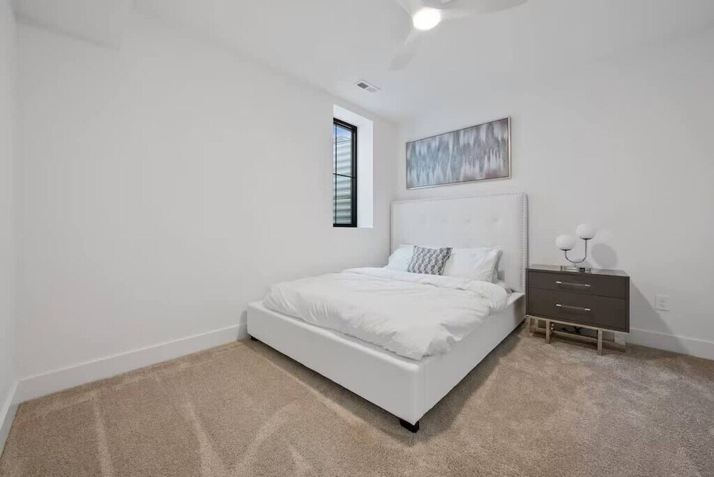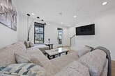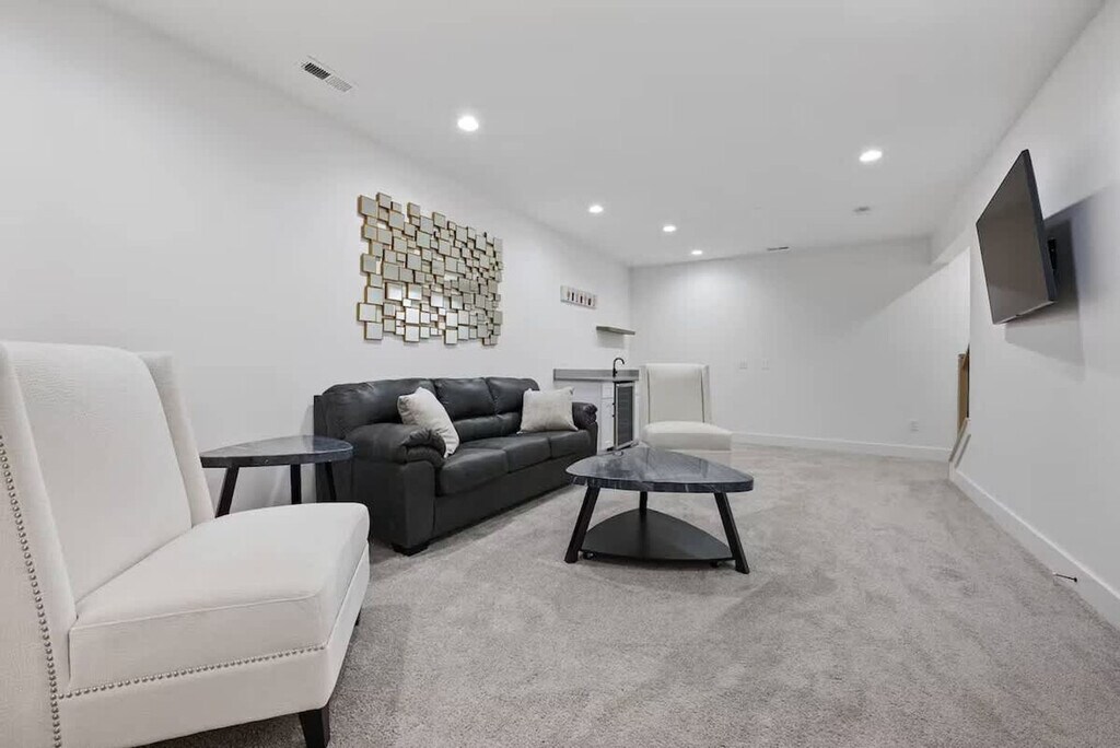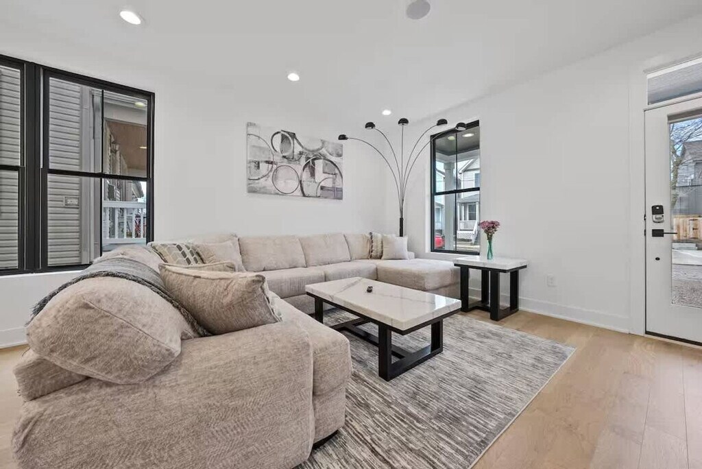 Feel at home in this modern, open, and airy 3-bedroom apartment in Columbus, offering 2,900 sq. ft. of living space. This apartment features upscale decor, huge windows, and a bright white interior. Each bedroom has its own full bathroom, plus there's an extra half bath for convenience. The first floor includes a full kitchen and dining area with quartz countertops and premium appliances. A bonus kitchenette on the second floor features a handy sink and a mini-fridge. Enjoy the private covered terrace outfitted with a Smart TV. Bring your furry pals for $40 per pet per night. Free street permit parking is available. Ideally located near the Short North, Columbus Convention Center, and Nationwide Arena, this apartment is close to the city’s events, dining, and nightlife. The Short North District is a short walk away, and downtown Columbus is just 1.5 miles away. You'll also be close to Kroger Food Market, Ohio State University campus, and have easy access to major highways and COTA lines for exploring the city. Quiet hours are from 9 p.m. to 7 a.m. No loud music is allowed at any time. No parties, small gatherings, or events are allowed. Smoking, marijuana, firearms, or illegal substances are prohibited on the property; smoking is allowed outside only. No additional unregistered guests are allowed. Absolutely no plants in the home are to be moved. Furniture is not to be rearranged. Tampering with exterior surveillance, noise monitors, and smoke sensors will lead to immediate cancellation with no refund, as well as a $500 violation charge. Any late check-outs will result in an additional charge of $300. Breaking any of the house rules will result in a charge of $500 each, subject to a charge per occasion and per broken rule separately. Includes a dedicated workspace. [SI]