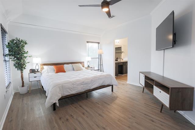Mid-Century Modern Oasis with Pool & Timeless Style. Photos are for staging. Property is available furnished or unfurnished. Ideal for families, corporate professionals, travel nurses, families in transition, executive relocations, and remote creatives seeking quiet luxury. Mid-century modern retreat with 4 beds, 3.5 baths, and a private pool. Completely renovated and filled with natural light, this home offers tall ceilings, a flexible upstairs loft, and a chef’s kitchen with stainless steel appliances and marble-style counters. Enjoy modern comfort with smart home technology, wood-look floors, and a pet-friendly fenced yard. The landlord covers property maintenance and quarterly pest and HVAC servicing, while the tenant covers all utilities and lawn care. Conveniently located near Lewisville Lake, DFW Airport, shopping, and major employers. Flexible leases: 3 mo $4,118; 6 mo $3,769; 12 mo $3,489.