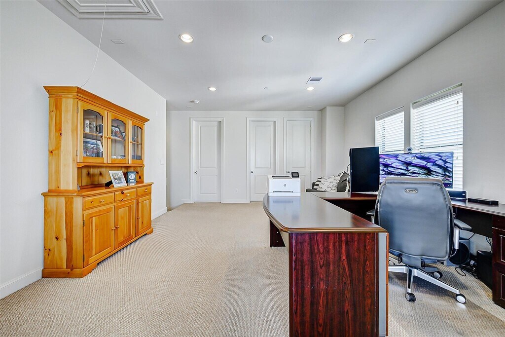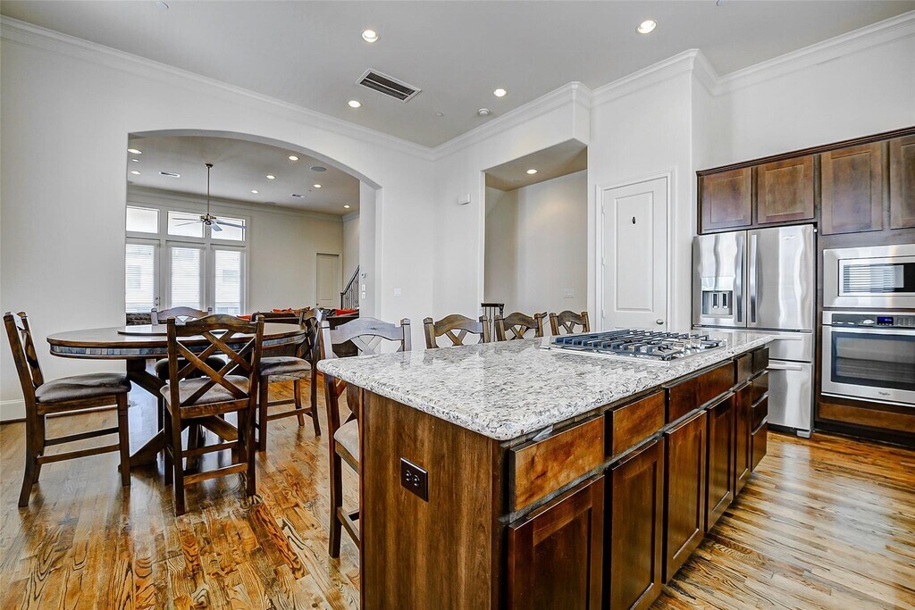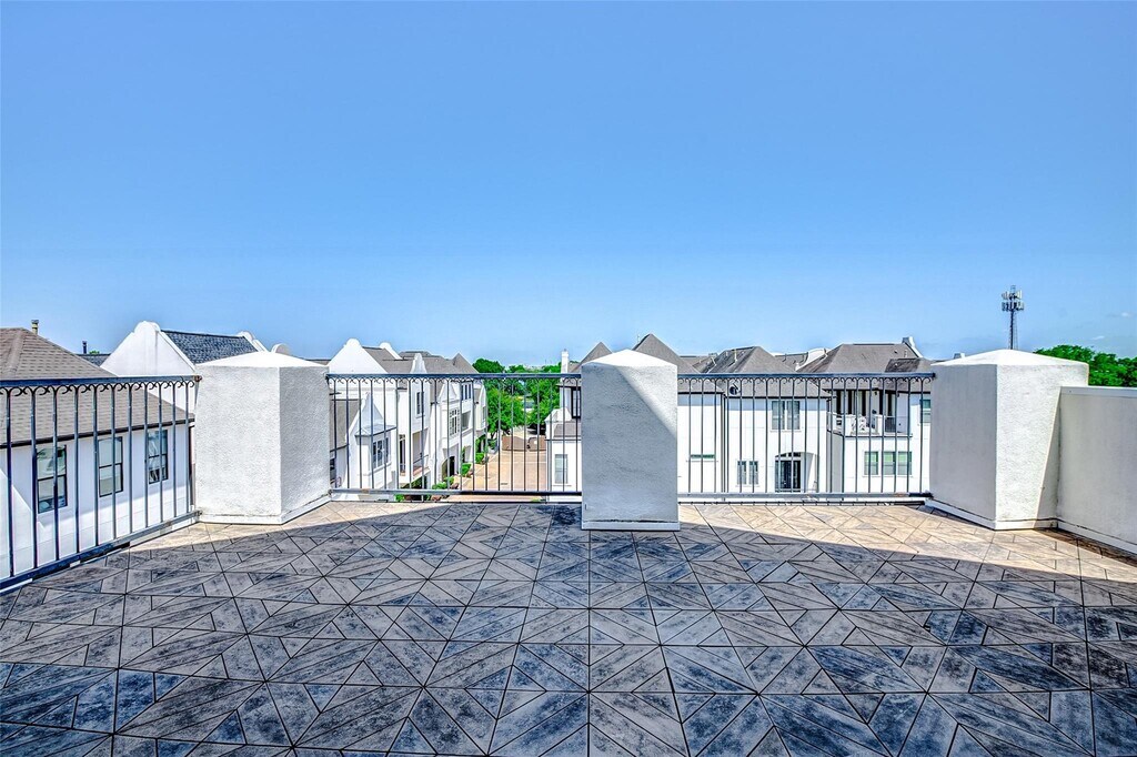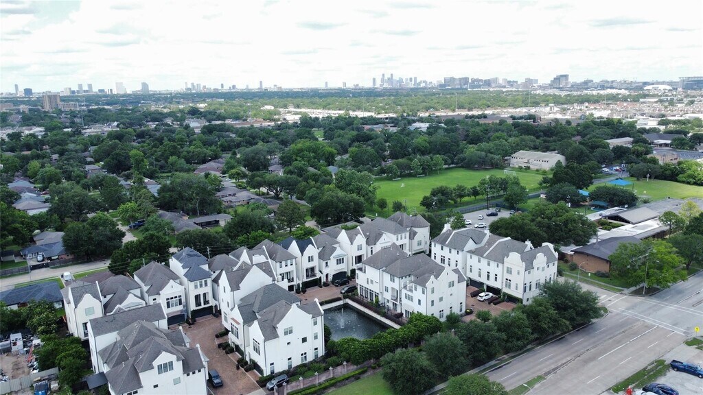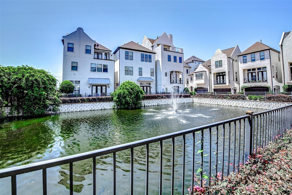 Experience Unparalleled Luxury Living in the Heart of Houston. Nestled in a secure,gated enclave near the Texas Medical Center,this striking four-story Mediterranean-style home offers 4 bedrooms,4.5 baths,and refined comfort across every level. One of only four unique 4 story units in the community,it features a full bedroom with ensuite bath on the first floor. The living area on the 2nd level boasts soaring ceilings,hardwood floors,gas log fireplace,and kitchen with gas cooking,all seamlessly connected to a spacious balcony. 3rd floor showcases a grand primary suite with luxurious en-suite,plus additional bedroom and bath. On the 4th level,a versatile game room/bedroom opens to a large rooftop terrace with breathtaking city and water views. Enjoy tranquil surroundings with paver-lined paths,a pond,and a walking trail,all with quick access to Downtown Houston,Galleria Shopping,I-610 and just 10 minutes to the Medical Center. MLS# 80485245