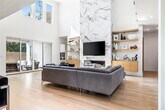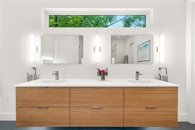 For sale and for lease. Modern luxury set on a prominent corner lot in sought after Midway Hollow, this sophisticated contemporary residence blends striking design with everyday functionality. The open layout unites the living, dining, and entertainer’s kitchen into one dramatic great room, accentuated by soaring ceilings and walls of windows that flood the interiors with natural light. The chef’s kitchen showcases a waterfall quartz island, sleek custom cabinetry, floating shelves, wine fridge, and dry bar. Smart home features, including integrated switches and motion sensors, enhance convenience and efficiency. Notable finishes include wide-plank white oak floors, porcelain tile, Level 5 smooth finish walls, recessed LED lighting, tankless water heater, and energy-efficient foam insulation. The floor plan offers a downstairs primary suite with a spa-inspired bath, plus a dedicated office that could also be purposed as a guest bedroom. Upstairs three additional bedrooms and a versatile bonus room provide ample space for family and guests. The home's inviting outdoor living spaces and private turfed yard are designed for relaxation and entertaining, with convenient access to premier private schools, Love Field, downtown Dallas, the Tollway, and an array of dining and shopping destinations.