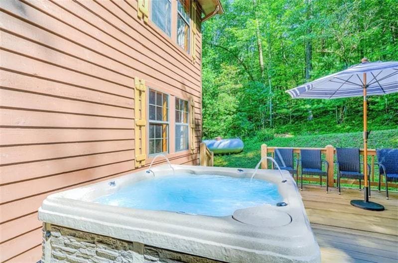 Escape to the mountains with this charming cabin retreat set on 2.5 private acres! Featuring beautiful pine floors and walls throughout,this home offers the warmth and character you've been looking for. Enjoy your morning coffee on the large screened front porch while watching wildlife in the peaceful surroundings. The updated kitchen opens to a cozy family room with vaulted ceilings and a woodburning stove—perfect for cool mountain evenings. The main level includes a bedroom and full bath with laundry,while upstairs offers a loft,second bedroom,and additional full bath. Step out back to relax under the stars in the new hot tub on the private deck. Whether you're seeking a serene getaway or a high-performing short-term rental,this mountain retreat checks all the boxes.