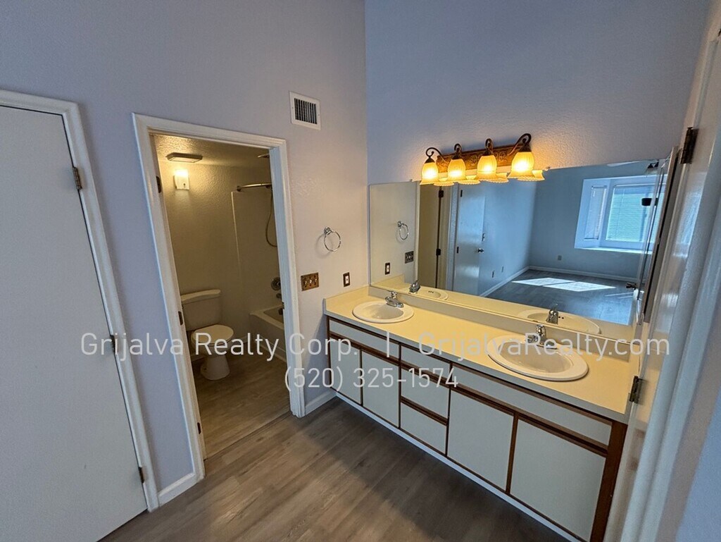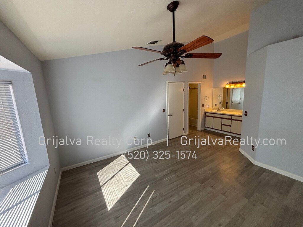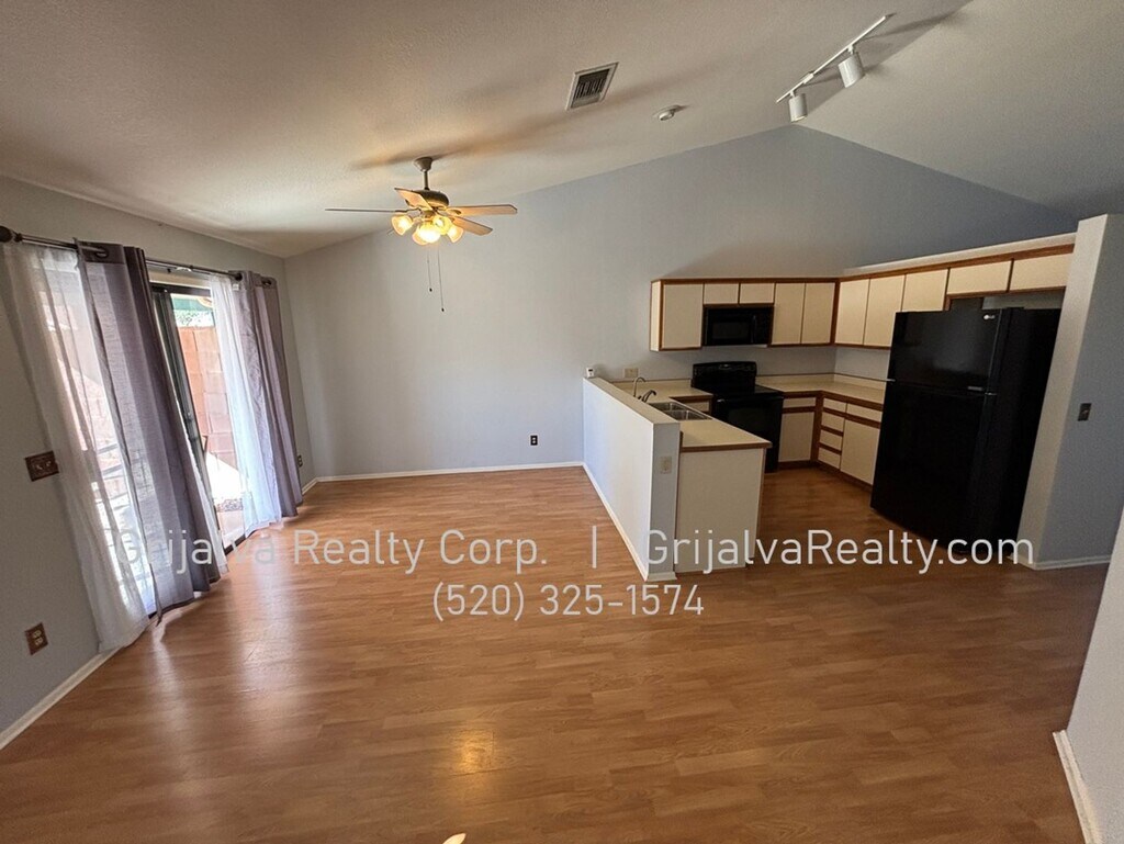 You need to see this 3-bedroom, 2-bath townhome in southeast Tucson. This home offers separate living & family Rooms, cozy fireplace, engineered wood floors in main living areas & new plank flooring in bedrooms, and vaulted ceilings throughout, high plant shelves. AC cooling plus ceiling fans. The open kitchen features wood trimmed cabinets & counters, double stainless sink & coordinated appliances (stove, refrigerator, dishwasher, and microwave). Breakfast area just off the kitchen. Spacious primary bedroom with bay window, walk-in closet. Covered back patio & roomy backyard with custom raised brick deck. Amazing neighborhood park with play equipment/ramada/sport court/views & a community pool with ramadas & BBQ grills. Tenant pays all utilities. Sorry, no pets allowed. This property is governed by an HOA and its rules/regulations. Directions to property: From Escalante and Houghton, head west on Escalante. Turn left on Cedarwood Way. Head south and then turn right on Skyward Way. At Headwind Way, turn right and then a few feet later, turn left on Skyward Way and go to address. Property is on the left.