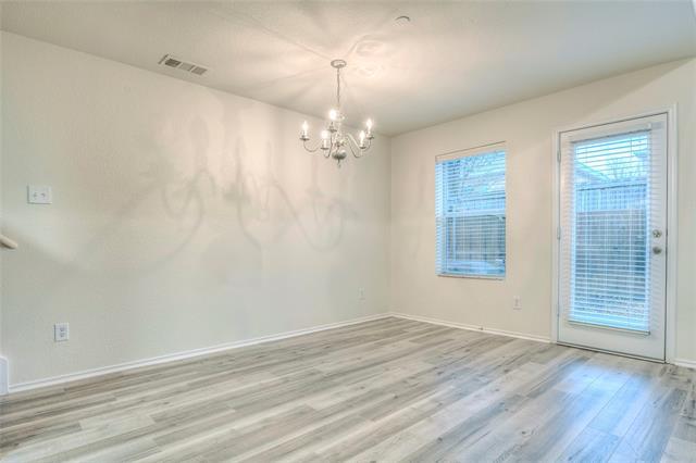 WELCOME TO YOUR NEW HOME! Prime location within the coveted FRISCO ISD schools, and walking distance to Collin County Community College and many shopping centers and dining options for entertainment and leisure. This lovely townhome has 1,939 sq ft, boasting high ceilings and windows that allow natural light into the generously sized open living room, along with a dining area, newly installed laminated wood flooring all downstairs. As you enter the front of the home you will find the formal dining room, that can be used for what your needs are: it can be a private office, a kids playroom, a game room, a tv or media room, homework area, library nook or music room. Kitchen has an XL island eat-in-kitchen, tons of space for meal preparation and lots of cabinet space for storage with access from the front facing 2-car garage. Tucked underneath the staris is a guest half bathroom. All 3 bedrooms are conveniently located upstairs. Primary bedroom has an ensuite bathroom with ceiling fan, tub and 2 split walk-in closets. The secondary bedrooms both share a second full second bathroom located in the hall. The den upstairs can be used as a relaxation area, to practice yoga, to do homework, as a second office, toy room, game room or TV room. Newly installed carpet all upstaris. Spacious and private back patio is perfect for enjoying some fresh air, or for your pets. Pets are case by case, ask agent about pet fees, they might require a monthly pet fee and non-refundable pet deposit for each pet. Submit TXR application form fully filled and singed form each 18 year or older adult living in the property, IDs, proof of income, photo of pets, if any. Then after review will send link for credit and criminal background check.