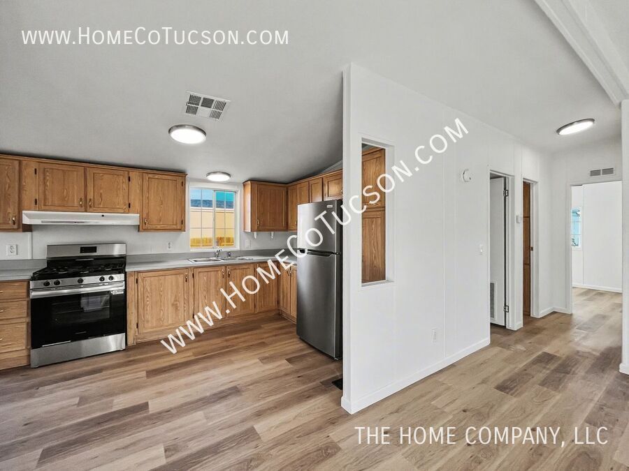 Updated three-bedroom, two-bath front home located near Silverbell and Coastline Blvd. This well-maintained home features a desirable split bedroom floor plan, dual-pane windows, and air conditioning for year-round comfort. The inviting living room opens to the kitchen, creating a bright and functional space highlighted by a cheerful breakfast nook and stainless steel appliances. The primary bedroom offers two closets and an ensuite bath, while the additional bedrooms are thoughtfully separated for flexible use. Outside, enjoy a fenced rear yard, low-care desert landscaping, and convenient off-street parking. A great combination of comfort, updates, and location in a Northwest Tucson setting. VIDEO TOUR: Explore this property with our comprehensive video tour to get a closer look at every detail before scheduling an in-person visit. **Walking Tour** **Virtual Tour** HOA: NO HOA UTILITIES: Tenant is responsible for Southwest Gas and Tucson Electric. There is a flat monthly fee of $65 per month for water, sewer & Trash To review our rental qualifications, apply, view additional video tours, or schedule a showing, please visit: **Website: ** For questions during business hours, please contact us: Text: Email: QUALIFYING REQUIREMENTS: Email for a full disclosure of fees and to review a blank lease document. Experience the difference with The Home Company! Visit to schedule a showing, apply, view additional media for each available property, and review detailed qualifying requirements and information. Proudly setting the standard for property management in Arizona, The Home Company is dedicated to improving the rental experience for both tenants and landlords. As an Equal Opportunity Housing provider, we are committed to fairness and transparency in every interaction. All our agents are licensed Real Estate Professionals, delivering knowledgeable support and exceptional service. Please note, The Home Company, LLC exclusively represents the Landlord in all property-related matters. As the Landlord’s authorized Agent, our responsibility is to act in their best interests throughout the rental process. Call: (Leasing Department, Monday–Friday, 10 AM–4 PM) Laundry Room Low Care Desert Landscape One Story Split Bedroom Floorplan Three Bedrooms Two Bathrooms Vinyl Wood Flooring Washer/Dryer Hook Up