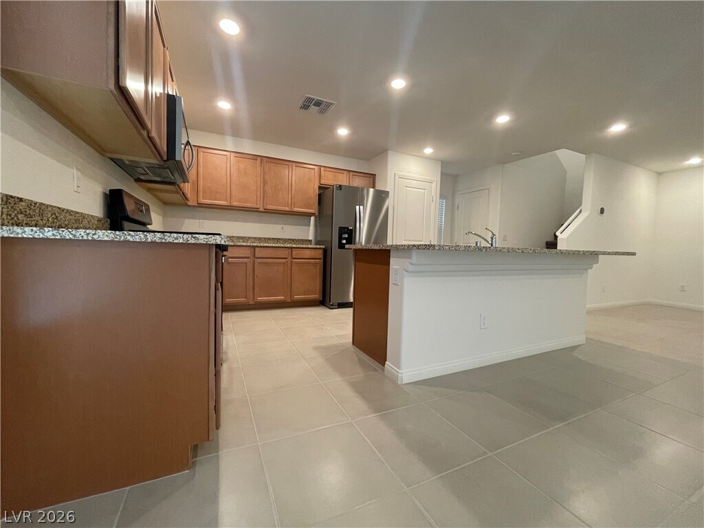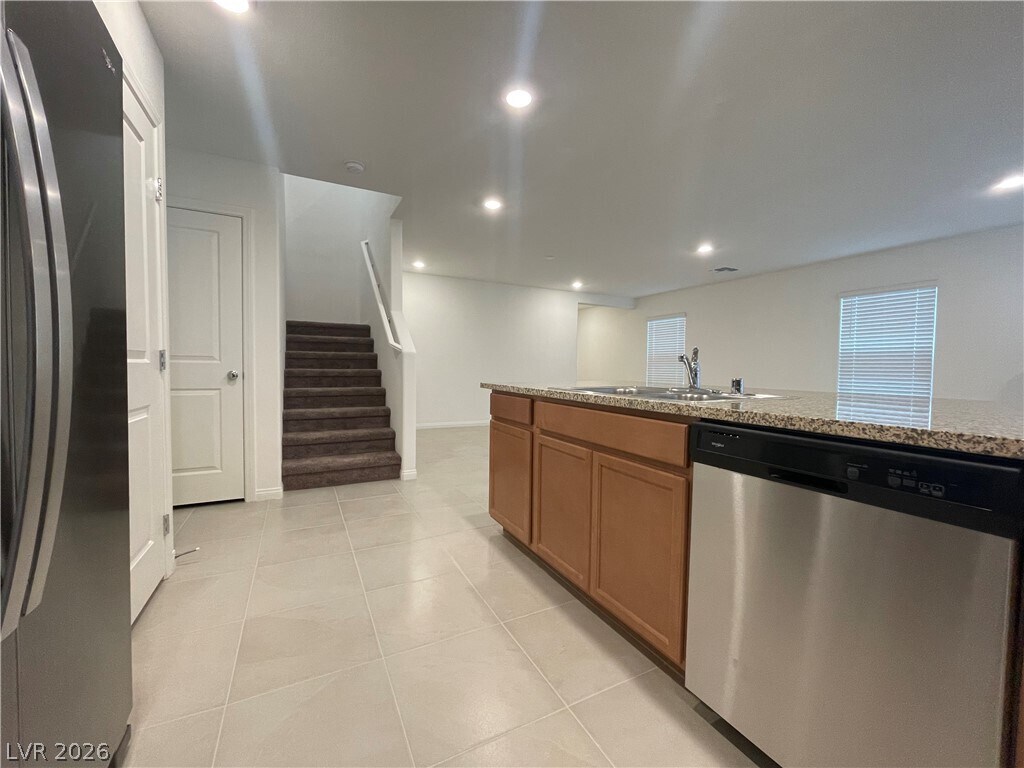 Gorgeous two story home for rent in Mountains Edge. Features open floor plan, four bedrooms, three full baths with bedroom and bathroom downstairs. Great room open kitchen has granite countertops and island. Two car garage, full driveway, tankless water heater and private yard. Nearby shopping, park, school and freeway access. Small Dogs welcomed!