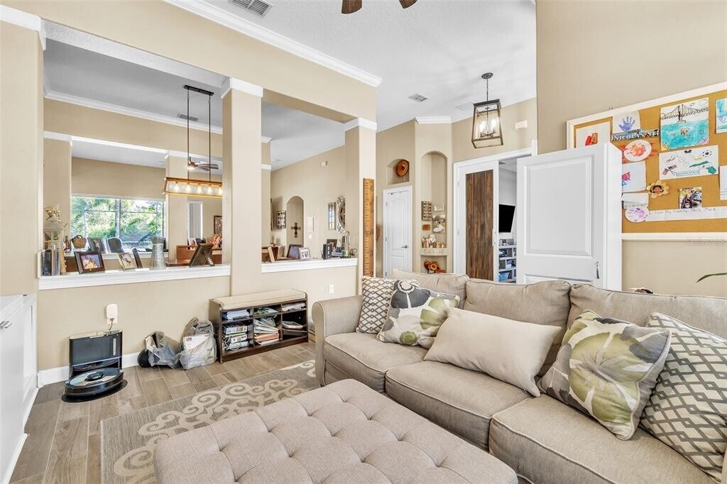 Experience effortless luxury in this beautifully appointed single-story residence in gated La Vina. This elegant 3-bedroom,2-bath home blends refined details with everyday convenience: a chef-ready kitchen with granite counters and breakfast bar,formal living and dining,a versatile office/flex room,and wide glass sliders framing tranquil pond views. Every stay feels like a vacation — the paved patio overlooks calm water and the community green,and the home sits steps from La Vina’s park and kayak access. Designed for discerning renters,this property comes move-in ready with premium services included: professional pool cleaning,scheduled lawn care,and high-speed internet — all covered in the rent so you can enjoy a maintenance-free lifestyle. Luxury touches abound: crown molding,decorative alcoves,designer ceiling fans,double pantry storage,and a private two-car garage. Location is strategic — minutes to Medical City and easy access to 528 & 417 for a smooth commute. MLS# O6374089
