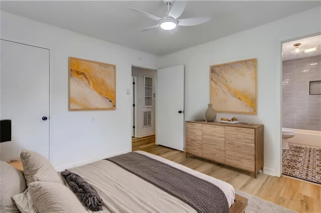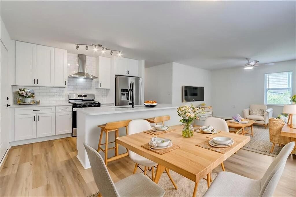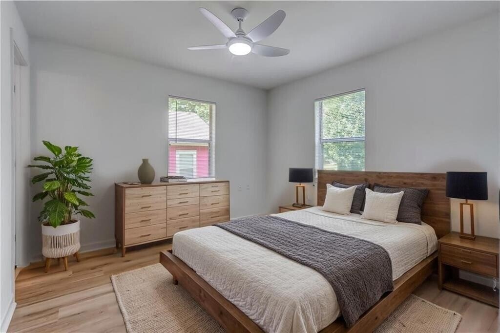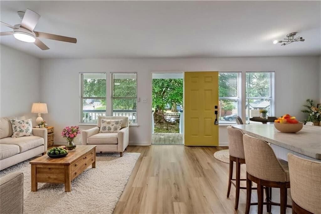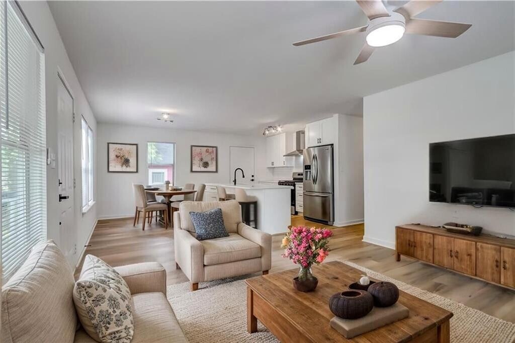 Experience the energy of Peoplestown in this light-filled,fully renovated 3-bed,2-bath home just minutes from the BeltLine,Summerhill,and the soon-to-open Terminal South food hall! With fresh paint,a rocking chair front porch,and a spacious backyard,this home combines modern comfort with unbeatable intown convenience. Inside,you'll find an open-concept layout featuring a brand-new kitchen with stainless steel appliances,an island with breakfast bar,and seamless flow into the dining area and living room—perfect for hosting or everyday living. The primary suite offers a private retreat with an ensuite bathroom showcasing stylish tilework and a tub/shower combo,along with a generous closet. Two additional bedrooms provide flexibility for guests,a home office,or creative space,all with ample storage. Enjoy thoughtful details like LVP flooring throughout,ceiling fans in every room,and a dedicated laundry closet. Off-street parking and a large backyard offer both convenience and space to relax or entertain. Just minutes from Georgia State Stadium,Pittsburgh Yards,Downtown,and major interstates,this move-in-ready gem is Intown living at its best! Owners are licensed real estate agents in Georgia acting as Principals.