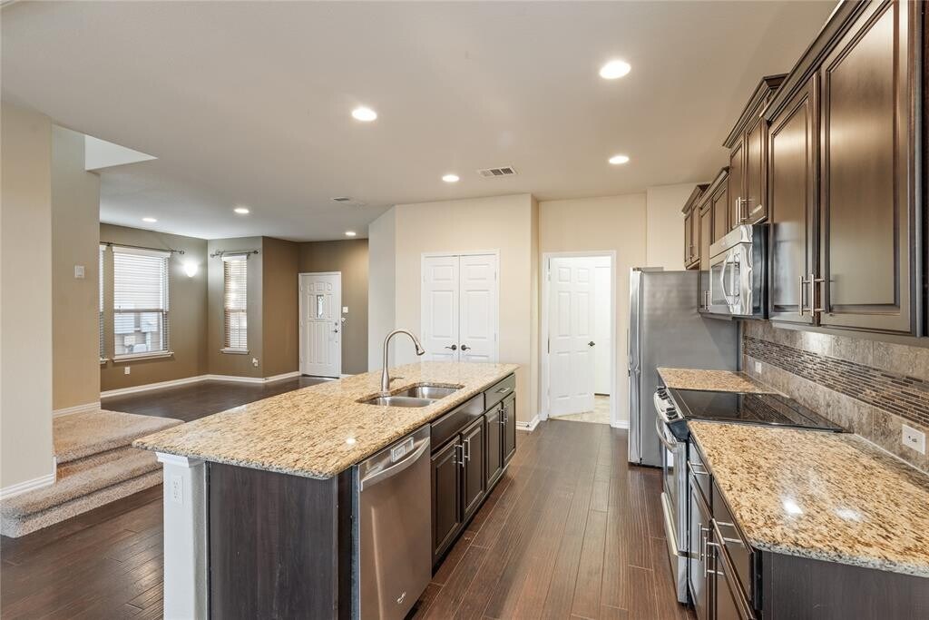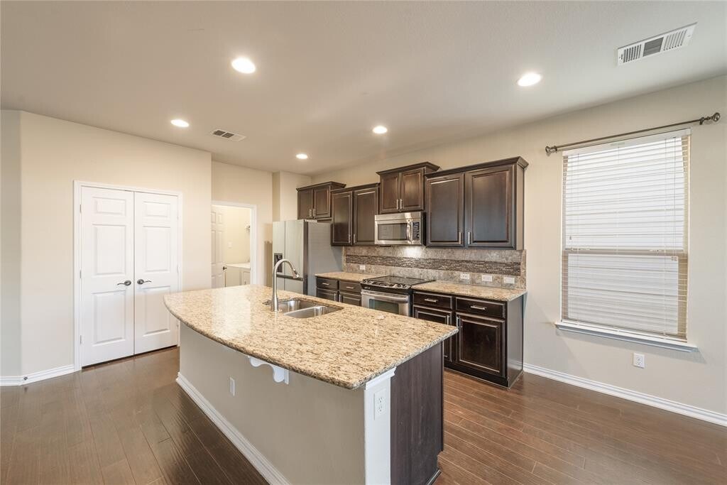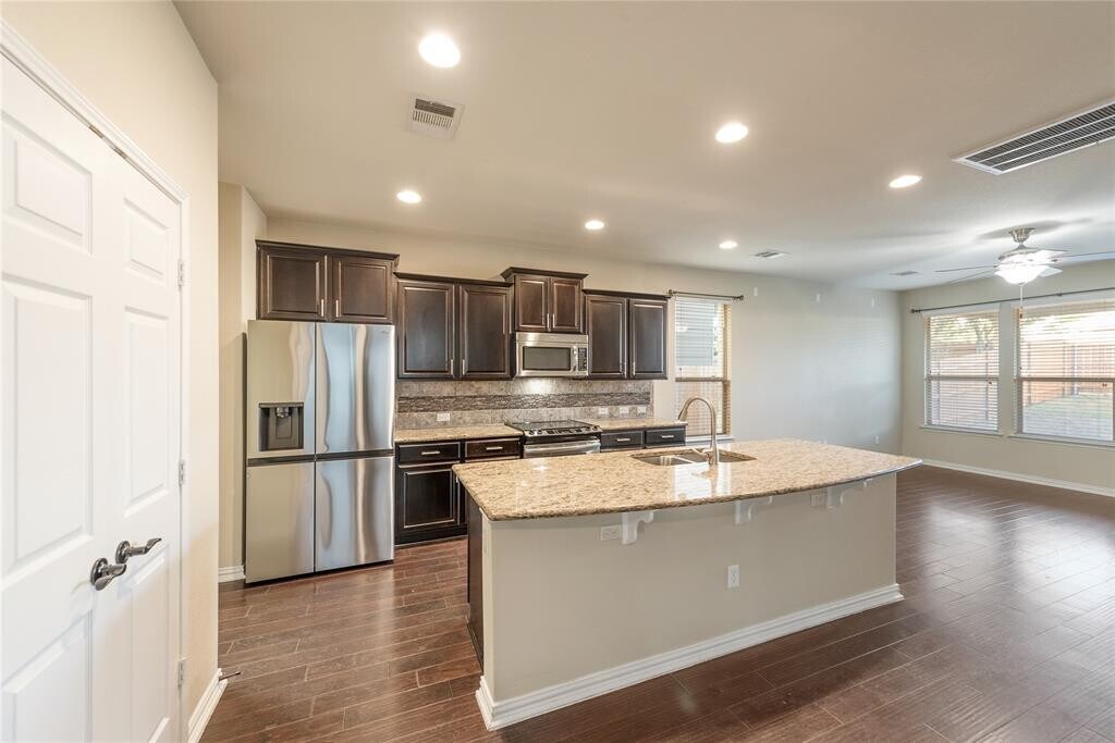 South Austin - 3 Bed + Game Room - Primary Suite on Main Level - Appliances included in rent This South Austin home delivers style, upgrades, and a highly functional floorplan. The main level features an open layout with wood flooring, a spacious living area, and a kitchen designed for entertaining—complete with granite countertops, stainless steel appliances, tile backsplash with glass mosaic detail, 42 maple cabinets, and a large center island. The primary bedroom is located on the main floor, with two additional bedrooms plus a game room upstairs. The home is pre-wired for surround sound and includes a full sprinkler system for easy maintenance. Enjoy quick access to Southpark Meadows for dining and shopping, or head to Moontower, Mary Moore Searight Park, or nearby disc golf courses. This location offers something for everyone. A strong South Austin opportunity with thoughtful upgrades throughout."