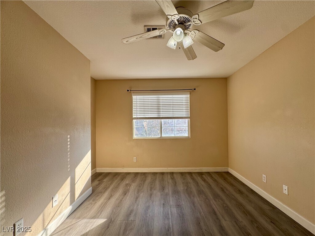 Beautiful 2-Story Home: 4 Bedrooms, 2.5 Baths, and an Additional Large Den Option from Tandem 3rd Car Garage converted- Total Living Space more than 2,250 Sq.Ft. This Blight & Light Home Features with Hardwood Floor; Laminated Wood Flooring Upstairs; and Tiles Floor in Kitchen & 2 Bathrooms; Granite Countertops; New appliances with refrigerator, stove, and laundry! All Bedrooms with Ceiling Fan/Light, Garage with Poxy Flooring, Private & Fully Backyard with Large Patio, Shaded Trees with Artificial Lawn. Gates Community Entrance with Pool and Spa facilities, Located Near Shopping Center, Dinning, Entertaining, and Schools, Easy Access to 215 Beltway, 20 mins to Airport and Las Vegas Strip.