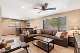 Come relax in this spacious custom desert home. Beautiful sparkling pool and spa in heart of Gold Canyon. This custom home boasts floor to ceiling stone fireplace. Three bedrooms with comfortable King Beds with a smart TV in every room. Two living room spaces to enjoy with family and friends. At the base of the Superstition mountains this beautiful home has great outdoor space. Which includes relaxing conversation couch's and outdoor dining under the huge covered patio. Comfortable lounge chairs to relax around the pool. A private courtyard off the primary bedroom to enjoy the stars. Close to all the gold courses and hiking Gold Canyon is known for. Let this be your comfortable home away from home. NO PETS!