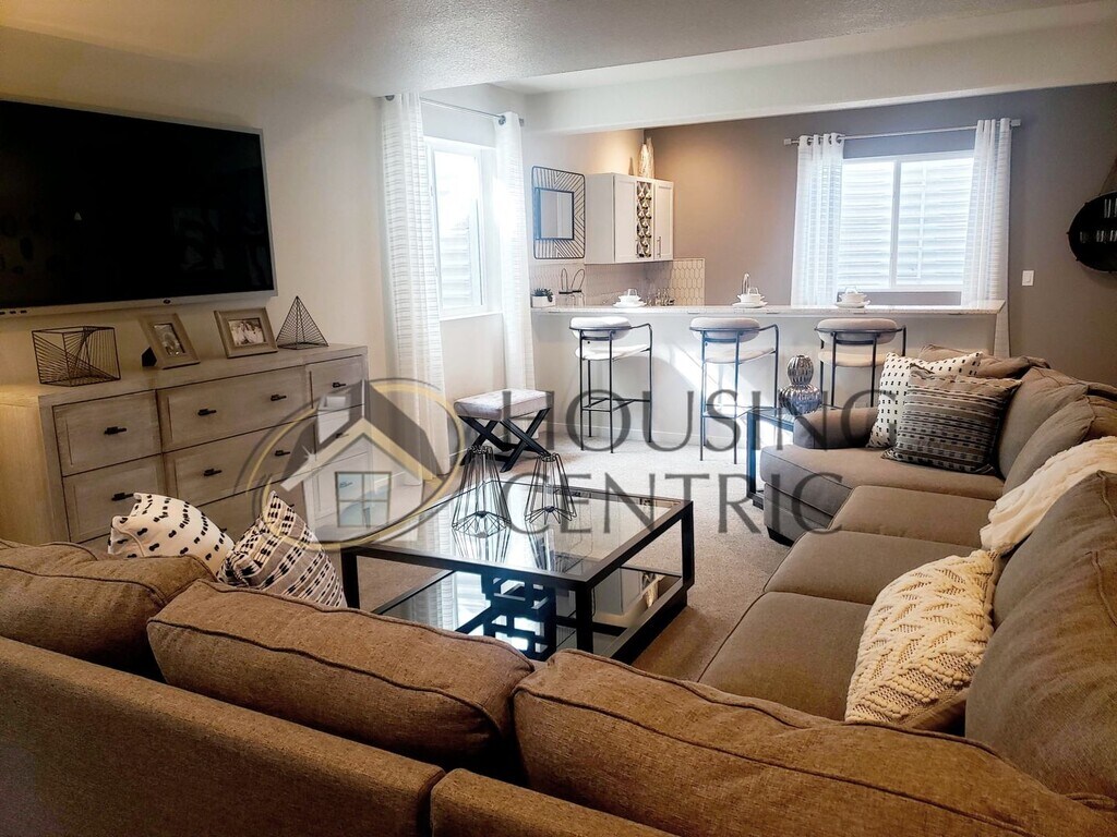 This Paradise Ranch Plan and former MODEL HOME is located in the WONDERFUL Timber Ridge Community. It has 5 bedrooms, 4 baths, an open-concept great room and a 4-CAR GARAGE! The Main Floor features a cozy Living Rm that has a gas Fireplace with floor to ceiling stone, a spacious Master Bedroom, an Ensuite Guest Room, Formal Dining Room, Living Room, Kitchen, Dinette and Laundry. You’ll love the Kitchen with Shaker style white SOFT CLOSE CABINETS, Crown Molding, Stainless Steel Appliances, including a 36” GAS COOKTOP with hood, Oven, Refrigerator and from the breakfast nook you can walk out onto the COVERED PATIO perfect for enjoying the views, relaxing or entertaining on the Expansive Fully Landscaped Backyard. The Spacious MAIN LEVEL Master Bedroom is separated from Master Bath with a barn door closure, and the Master Bath has a dramatic shower, double sinks and a spacious walk-in closet with convenient access to the laundry area! The HUGE Basement Level has 1' TALLER CEILING HEIGHT and features a Spacious rec room with WET BAR and there are 2 bedrooms with walk-in closets that share a bath, and a Junior Master Suite has its own bath and walk-in closet. The home can be rented fully furnished, as noted in the photos. This Home is in a TRULY BEAUTIFUL community with lots of WALKING TRAILS, views and has convenient access to shopping, dining, and freeway access! Terms of Tenancy: 1. A Credit Score of 680 or above is required on this property for tenancy. 2. The tenant must have a minimum income of at least 2 times the rent rate. 3. Tenant pays for all Utilities including electricity, gas, water, sewer and garbage. 4. No smoking of any kind in the home. 5. Pets must be approved by Owner prior to Tenant acquiring the animal - $1,000 deposit per pet. 6. Tenant to maintain the front and back landscape. 7. Ready for occupancy 10/01/2025. 8. Lease term to be 6 or 18 months at this time. 9. Go to for more details and how to Apply. 10. Contact Property Manager to schedule a showing: