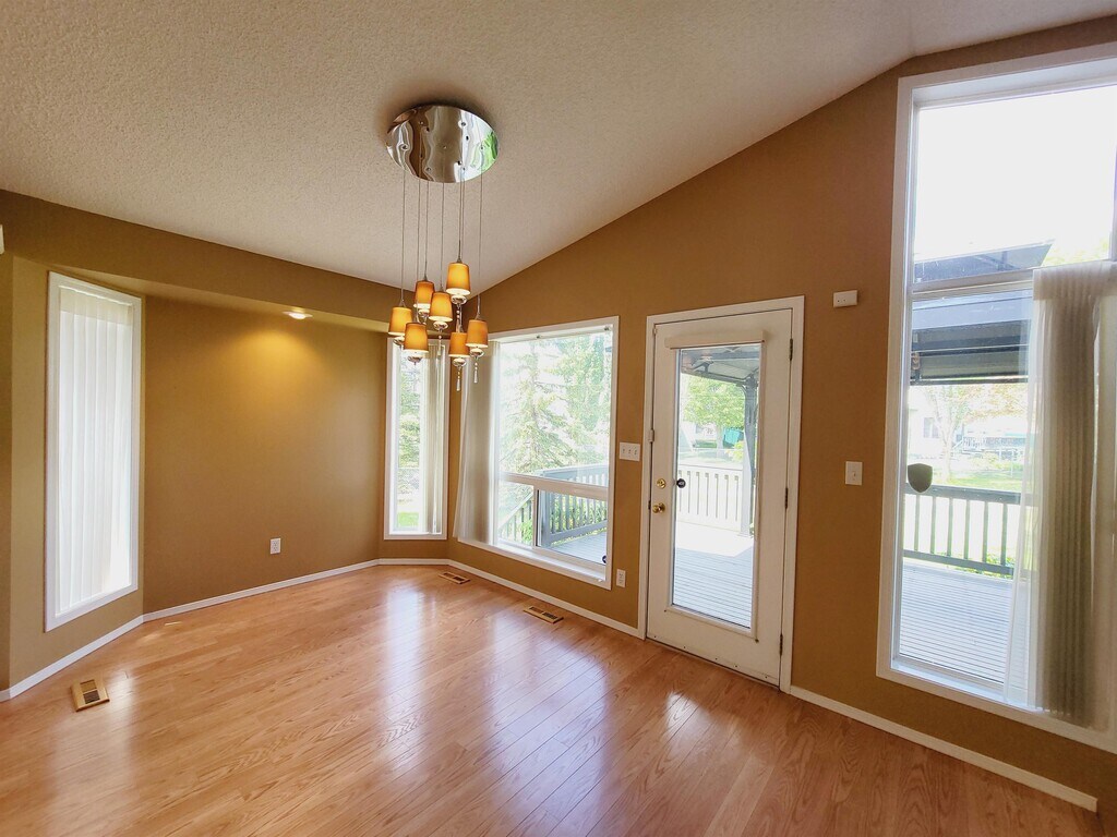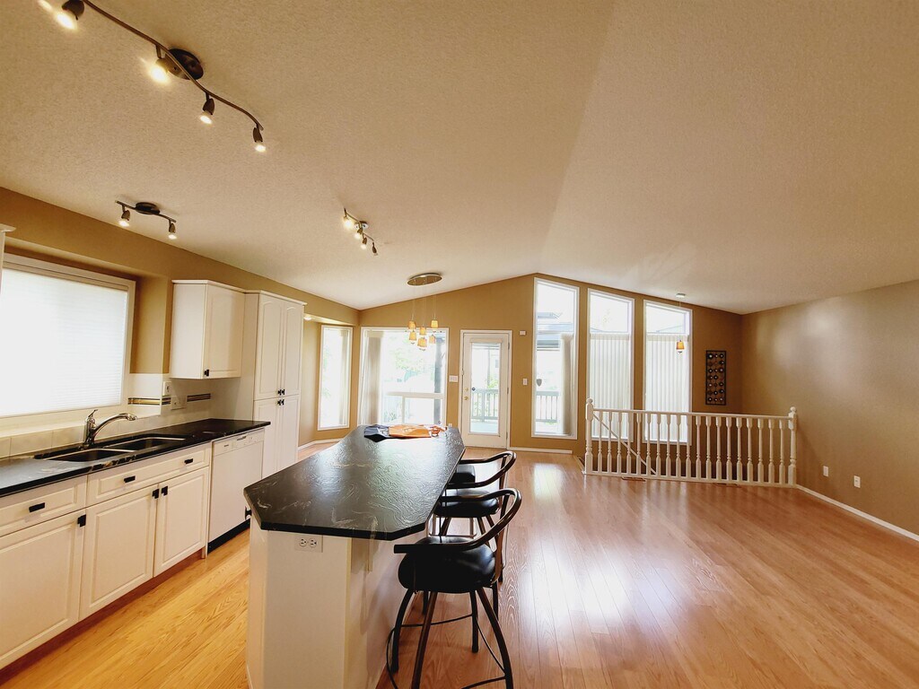 - Additional Property Details- Immaculately maintained BUNGALOW STYLE half-duplex with Double Attached Garage, located in a quiet and family friendly cul-de-sac steps away from a gorgeous park and walking trails. This lovely home offers vaulted ceilings and a modern open concept with floor to ceiling windows. The highly functional kitchen boasts European cabinetry and central island with Stone Crafted counter tops. The timeless gas fireplace is complimented by pristine laminate flooring that flows out to the Large Deck and gazebo, and massive Yard space. Perfect for building memories with loved ones. The primary bedroom offers an Ensuite 3 piece bath with skylight, along with another bedroom and 4 piece bath, MAIN FLOOR LAUNDRY, and a home office space which could be used as a 3rd bedroom. Lower level is fully finished with a large family room, a good-sized bedroom, den, full bathroom, and storage room. Central vacuum system and high efficiency furnace. Pet friendly subject to approval and monthly pet fees. Great location with easy access to the Henday and major amenities like schools, playground, shops and more. Bungalow style half duplex with double attached garage; Located in community of Eisinore; Quiet and family friendly cul-de-sac; Vaulted ceilings; Open concept floor plan; Floor to ceiling windows; European style kitchen cabinets and central island; Stone countertops; Gas fireplace; Large deck and Gazebo; Fully landscaped, fenced backyard; Primary bedroom with ensuite bath; Home office space; Fully finished basement; Den in basement; Main floor laundry room; Additional storage space; Pet friendly subject to approval and monthly pet fees; Close to schools, parks, playground, transit, shopping, Henday and more.