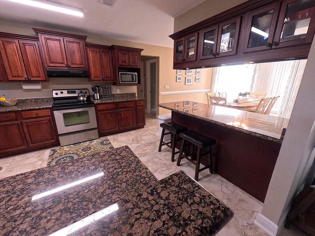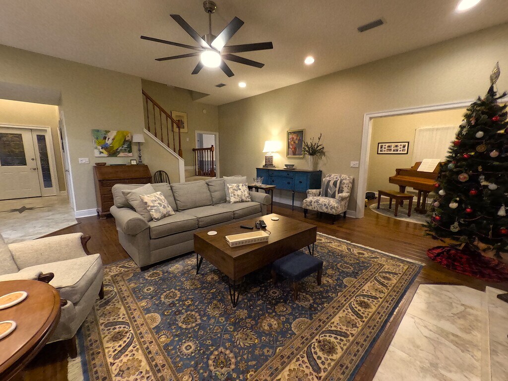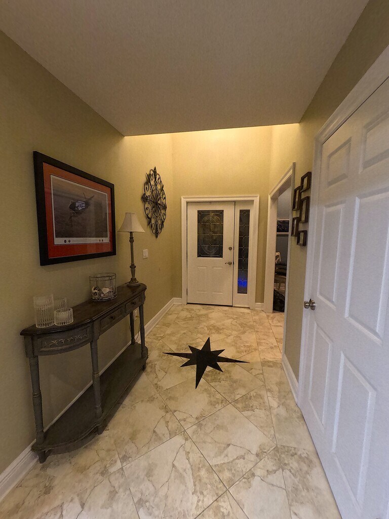 A Florida paradise awaits in this meticulously updated 3-bedroom custom luxury home for rent! Nestled on a quiet lot near the cooling breezes of the Intracoastal Waterway, 998 Fay Drive offers a rare peaceful sanctuary, adjacent to a lush wooded preserve that ensures natural privacy. Enter through a grand foyer featuring a soaring 30-foot ceiling, an ornate chandelier, and an architectural gallery balcony. This home is designed for both scale and comfort, with vaulted ceilings and high-quality finishes, including elegant tile and warm-toned engineered hardwood floors. Just off the foyer, the befitting front office serves as a sophisticated workspace for the modern professional. An entire wall of exquisite built-in bookshelves provides a polished backdrop for elegantly displaying your library and memorabilia. At the end of the foyer, the gourmet kitchen features sprawling granite countertops, ample custom cabinetry, a pantry, and a sun-drenched dining area framed by large bay windows. In the center of the home, the expansive living room centers around a cozy wood-burning fireplace and flows into a versatile bonus room, perfect for a music studio or your favorite hobby space. The first-floor master suite offers a private retreat, quietly separated from the upstairs bedrooms and entertainment areas. The master bedroom offers a roomy atmosphere with 10-foot vaulted ceilings. The master bathroom features freshly updated quartz countertops, new cabinets, double sinks, an oversized jetted bathtub, a walk-in closet, and a beautiful custom shower with tastefully artistic waterfall tile accents. The upper level is a family entertainer’s dream, offering a massive media room currently furnished with an 86" 4K Smart TV, sound system, and 3-person viewing sofa. Two additional bedrooms share a freshly tiled bathroom. The bedrooms feature a reading nook and a built-in hardwood shelf with stunning views of the surrounding greenery. Each bedroom has a walk-in closet. The exterior is a natural extension of the home, featuring a large landscaped yard with mature palm and pine trees, a tranquil koi pond, a large recently rebuilt deck, and a boat parking pad. The backyard is fenced with access gates on each side. A shed provides ample storage space. The garage easily holds 2 vehicles and includes large cabinets and enclosed storage areas. Location is ideal! 5 minutes to Hurlburt Field- just minutes to world-class white sandy beaches. Easy access to Pensacola, Eglin AFB, Duke Field, and Destin. Pet-friendly with approval. Recent updates: 2019: engineered hardwood floors on first floor 2022: master bathroom renovation, upstairs bathroom floor retile 2023: whole-house plumbing repipe 2023: east-wing ceiling repaint 2024: front porch rebuild, deck rebuild, fence rebuild 2025: electrical system refurbishment