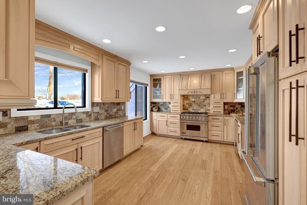 Set on 5.6 private acres in Great Falls, this beautifully renovated 4-bedroom, 3-bath home combines refined interiors with peaceful surroundings. Hardwood floors run throughout, enhancing the home’s bright, open feel. The main level features a light-filled living room with deck access, a chef’s kitchen with Viking range, wall oven, granite countertops, and maple cabinetry, plus a dining room and inviting family room with wood-burning fireplace. A stunning sunroom with walls of windows and skylights opens to the wraparound deck. A main-level bedroom/office, full bath, and spacious mudroom/laundry complete this floor. Upstairs, the owner’s suite offers multiple closets and a renovated bath with travertine floors, double vanity, and frameless glass shower. Two additional bedrooms, a loft, bonus room, and full bath provide flexible living space. The walk-out lower level is framed for future rooms with a bath rough-in and abundant natural light—ready for your customization. A rare opportunity for privacy, space, and modern updates in an exceptional Great Falls setting.