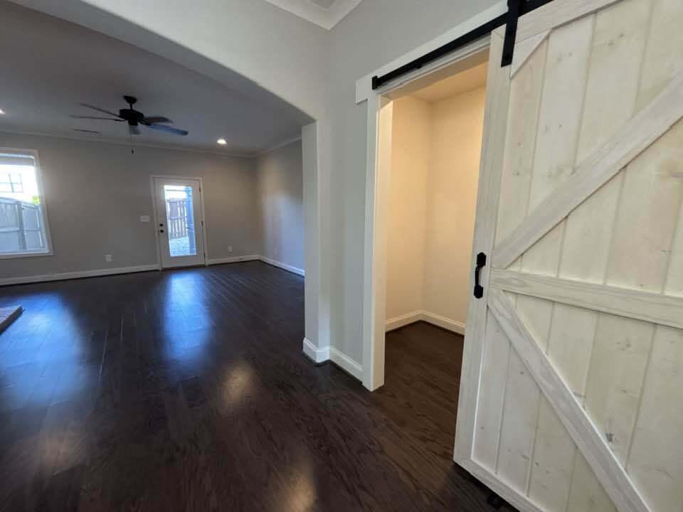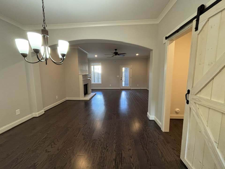 Low-maintenance fenced-in backyard w/pea gravel. Hardwood floors throughout! 3 parking places reserved for this unit. Stainless steel appliances including refrigerator. Gas: cooking, heat, water heater, fireplace. Granite in kitchen & full bathrooms. This home has 2 primary bathrooms! The Essex features 3 bedrooms and 3.5 bathrooms. The main level includes a kitchen, living room, and dining room, along with a half bathroom and a cozy nook with a barn door. Enjoy the warmth of a gas fireplace, and benefit from gas cooking, heating, and a water heater. This corner unit has additional windows on the side, providing plenty of natural light. The home has hardwood flooring throughout and a fenced-in backyard with easy-to-maintain pea gravel. Unit amenities Cable, Ceiling fan, Dishwasher, Dog friendly, Double sink vanity, Dryer, Fenced yard, Fireplace, Hardwood floors, Kitchen island, Linen closet, Microwave, Mirrors, Pantry, Pet friendly, Private patio, Refrigerator, Stove and oven, Walk-in closets, Washer