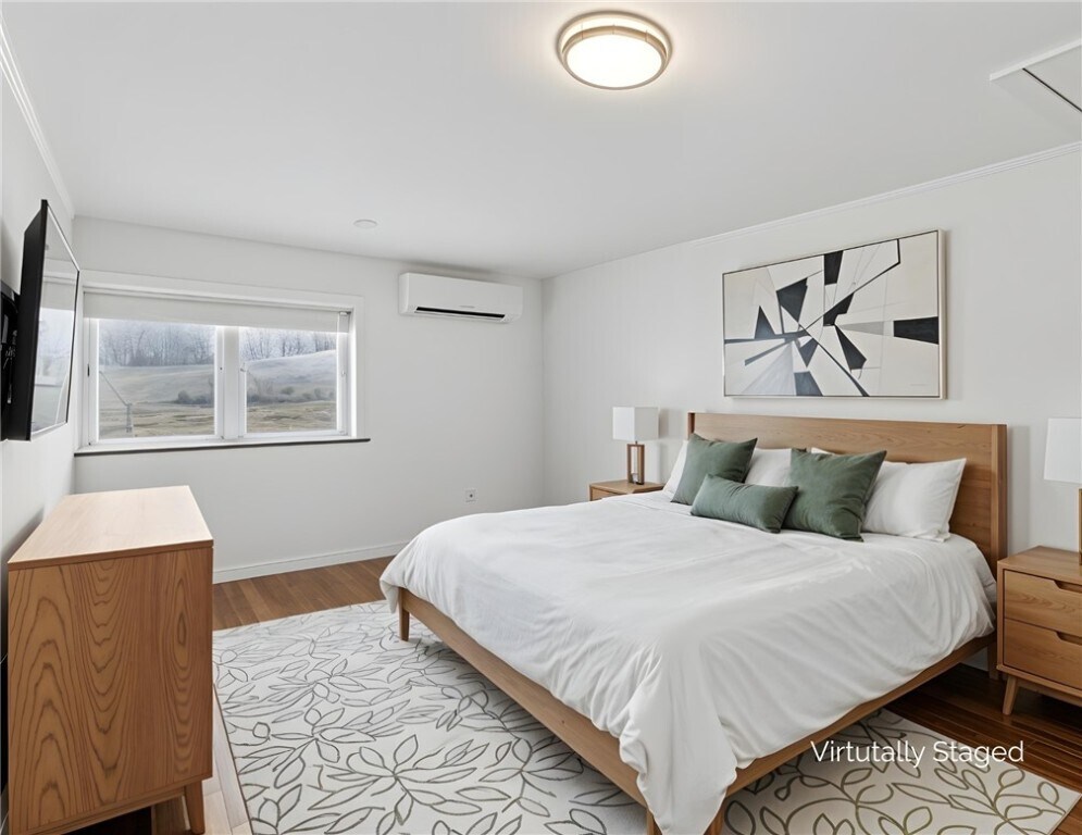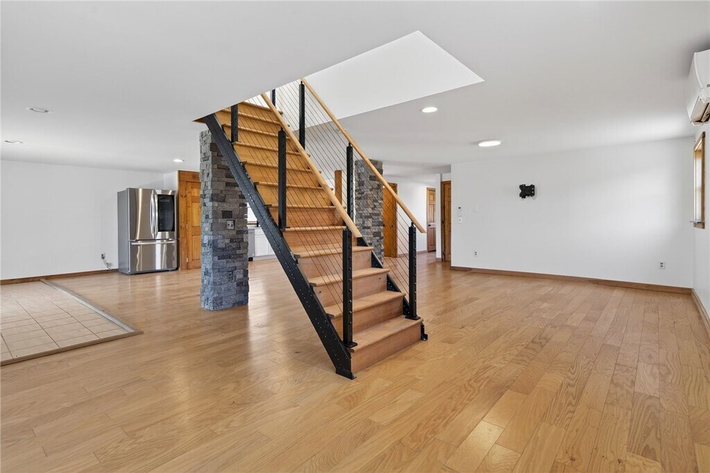 Spacious and beautifully updated single-family rental offering privacy,open views,and easy access to Ithaca and the surrounding areas. This unique home features a bright,open main living area,a modern kitchen with white cabinetry,stainless steel appliances,subway tile backsplash,and plenty of workspace. The layout includes three bedrooms,one full bath,and multiple flexible living spaces that can be used for a home office,studio,or additional lounge area. The upper level offers a large loft-style living space with vaulted ceilings,abundant natural light,and sliding glass doors leading to a spacious deck overlooking fields and countryside views. Mini-split systems provide efficient heating and cooling throughout the home,and solar helps offset utility costs. Outside,the property offers plenty of room to spread out,with a large yard,garage,and shed,and a peaceful rural setting,while still within reasonable driving distance of Ithaca,Lansing,and Auburn. Lawn maintenance and snow removal are included in the rent.
