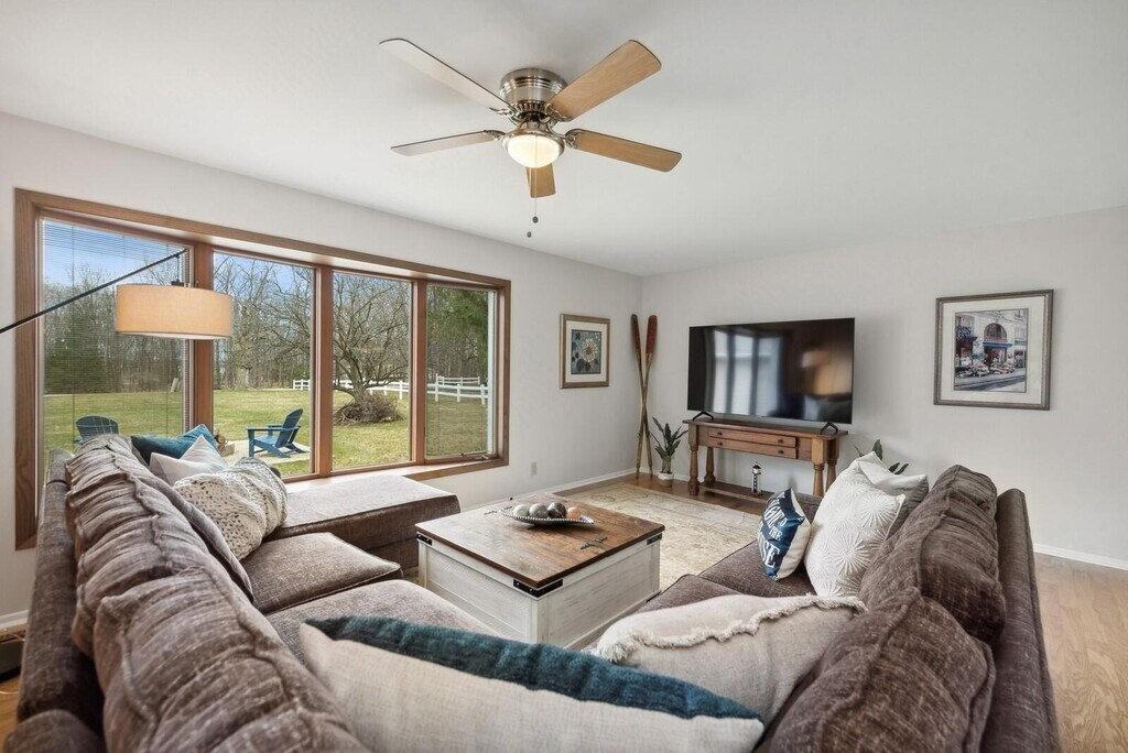 Enjoy as a full time residence or a vacation escape. 4 bedrooms,3 full baths and plenty of room to spread out! Main floor features living room,dining and eat-in kitchen that flows to the large deck overlooking the yard. Upstairs,you'll find the master ensuite along with 2 generous bedrooms that share a hall bath. The lower level has a family room,utility room and additional 4th bedroom with access to the garage and lower level storage. This pet-friendly home has a large yard (1 acre in total) and fully stocked for easy living. In an ideal location between Williams Bay and Fontana,you're not far from dining,entertainment,shopping and more.