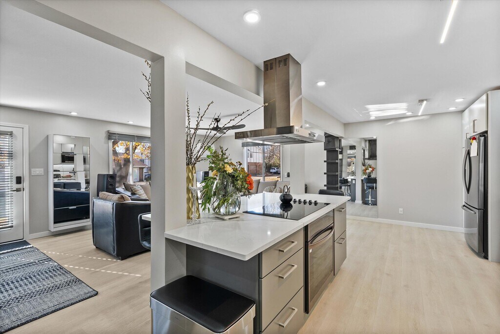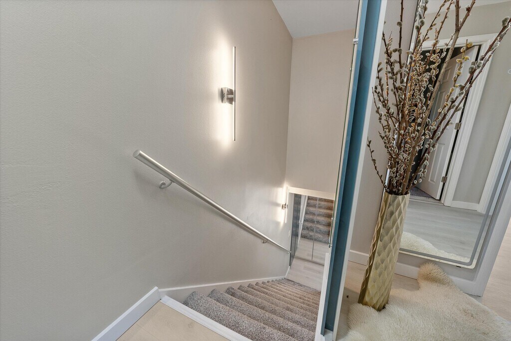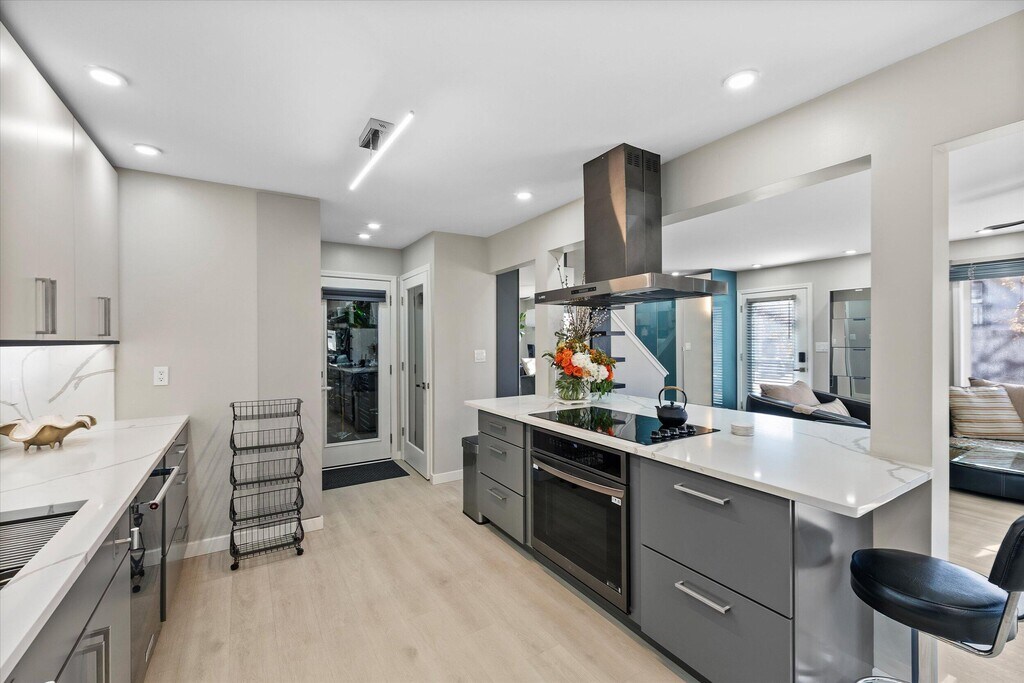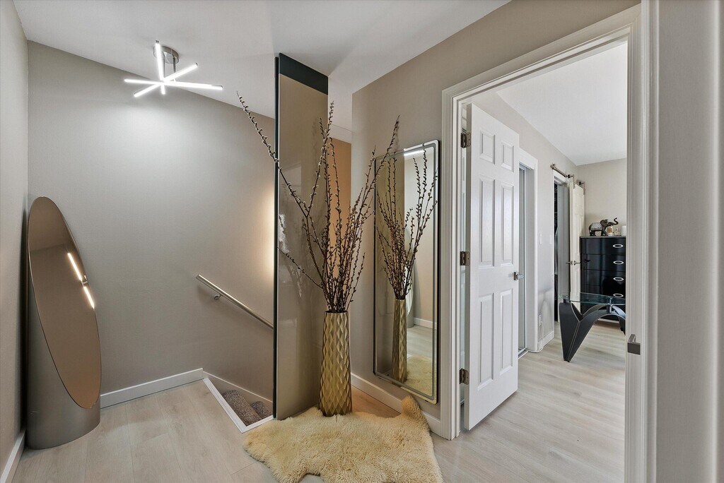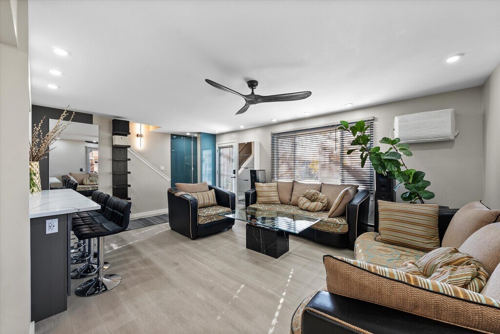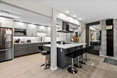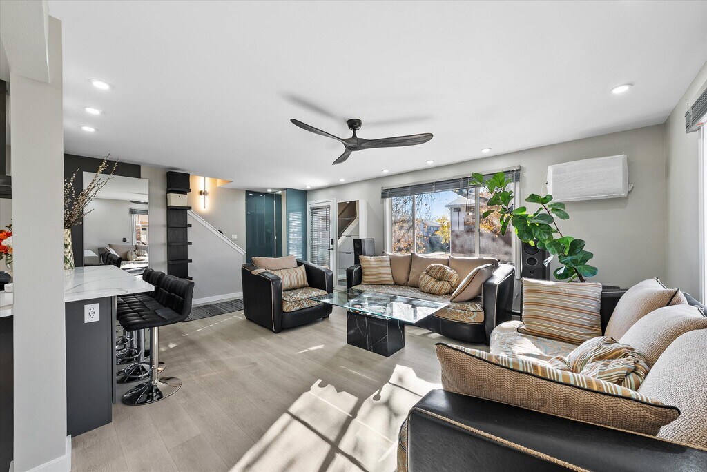 Beautifully renovated condo in a desirable community with a pool and great location. Bamboo flooring runs throughout the home. The 2.5 spa-inspired baths feature heated towel racks,tiled shower cabins,and custom LED heated mirror cabinets. The gourmet kitchen offers real wood cabinetry to the ceiling,stone countertops and backsplash,a large island with bar seating,pantry,and exterior-vented hood. Bright living spaces feature new doors and windows with abundant natural light. Two large bedrooms are upstairs; the finished basement provides a rec room,third bedroom or office,full bath,and laundry with washer and dryer. Finished garage with epoxy floors,storage,utility sink,smart quiet opener,plus whole-home water softener and RO system. A rare opportunity for luxury living.