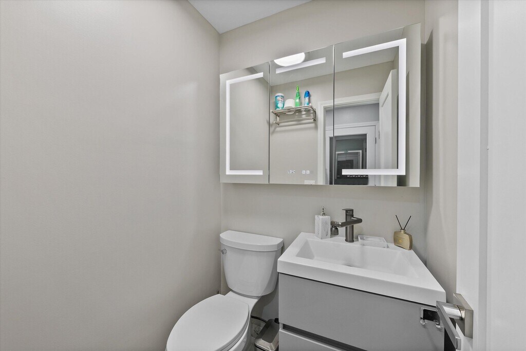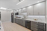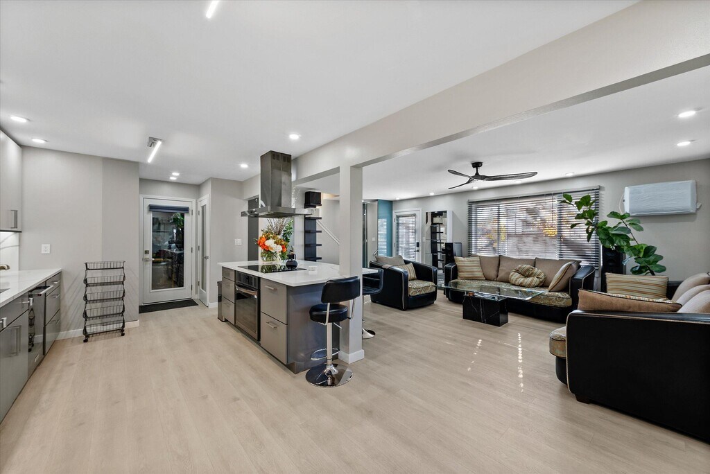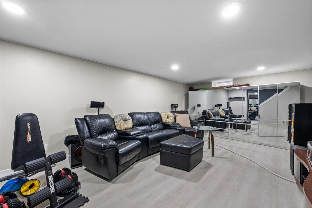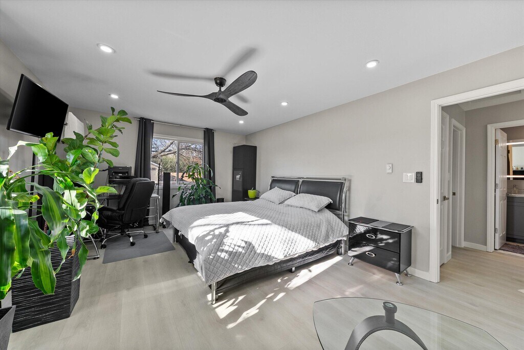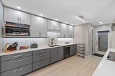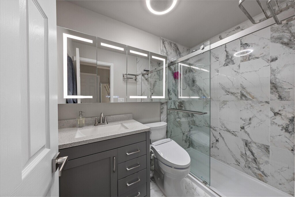 Beautifully renovated condo in a desirable community with a pool and great location. Bamboo flooring runs throughout the home. The 2.5 spa-inspired baths feature heated towel racks,tiled shower cabins,and custom LED heated mirror cabinets. The gourmet kitchen offers real wood cabinetry to the ceiling,stone countertops and backsplash,a large island with bar seating,pantry,and exterior-vented hood. Bright living spaces feature new doors and windows with abundant natural light. Two large bedrooms are upstairs; the finished basement provides a rec room,third bedroom or office,full bath,and laundry with washer and dryer. Finished garage with epoxy floors,storage,utility sink,smart quiet opener,plus whole-home water softener and RO system. A rare opportunity for luxury living.
