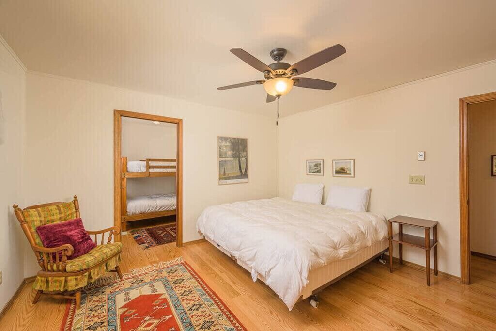 Located on the picturesque Dake Lake, part of Waupaca's Chain of Lakes, this charming lakehouse is just 10 minutes from downtown Waupaca. Enjoy the convenience of being 5 minutes from Clearwater Harbor Bar and Tom Thumb Mini Golf, and only 3 minutes from Wheelhouse Pizza and Scoopers Ice Cream Shop. The property features three full bathrooms with showers and offers flexible self check-in and check-out with a keypad. You'll absolutely love this home, which boasts a fully equipped kitchen with two ovens and ample counter space, perfect for preparing meals during your stay. The living room, dining room, counter seating, and Arizona room provide plenty of seating, with additional space on the deck. Enjoy free access to a charcoal grill, stand-up paddleboard, and kayak. The private dock is ideal for parking your boat or enjoying a swim in the quiet, no-wake lake, perfect for swimming and fishing. Dake Lake is a 35-acre, 26-foot deep lake ideal for fishing, swimming, and boating. As part of Waupaca's famous Chain of Lakes, it neighbors Minor Lake and Columbia Lake. Bring your boat to launch at the nearby boat launch and park it at the private dock, or rent one from Ding's Dock boat rental just 3 minutes away. The property features keyless locks for easy access, allowing you to enjoy your stay independently. However, assistance is just a text or phone call away if needed. Smoking of any kind is prohibited inside the home, with a $250 fine for violations. Parties are not allowed, and guests are asked to treat the home with respect, leaving it in the same condition as found. Please remove shoes when entering and feel at home. [SI]