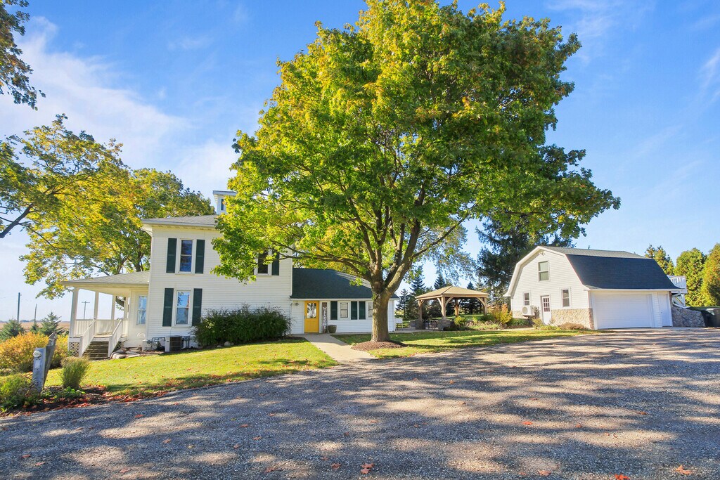 Luxurious 3BR,2BA farm house rental with 1.75 car det. garage and covered porch boasting southern sun and expansive views on a large rural lot. Rent Includes High Speed Internet. Lawn and Snow Service,and Water Conditioning for nearly maintenance free living. Open concept main floor features spacious entertaining kitchen w custom cabinetry,island seating,SS Appl's,and mounted TV,sun drenched dining and family rm,full bath,laundry,and mud room w built-in's. Entertain in privacy on the rear paver patio w covered gazebo and firepit ideal for cookouts. Primary BR,2nd BR,Mn Flr Bath feature closet organizers. Driveway is shared w Landlord for access to their adjacent storage buildings. Medium size dog may be permitted with Landlord approval. Min 18 month lease.